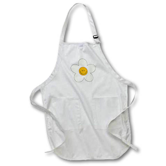 Smiling and Cute Daisy Flower Apron is made of a 65/35 poly/cotton blend. Whether it is put to use in a restaurant or at home, this apron will always help to keep you clean. Full length features adjustable neck strap. Medium length features non-adjustable neck strap that fits over your head. Both sizes also tie around the waist.