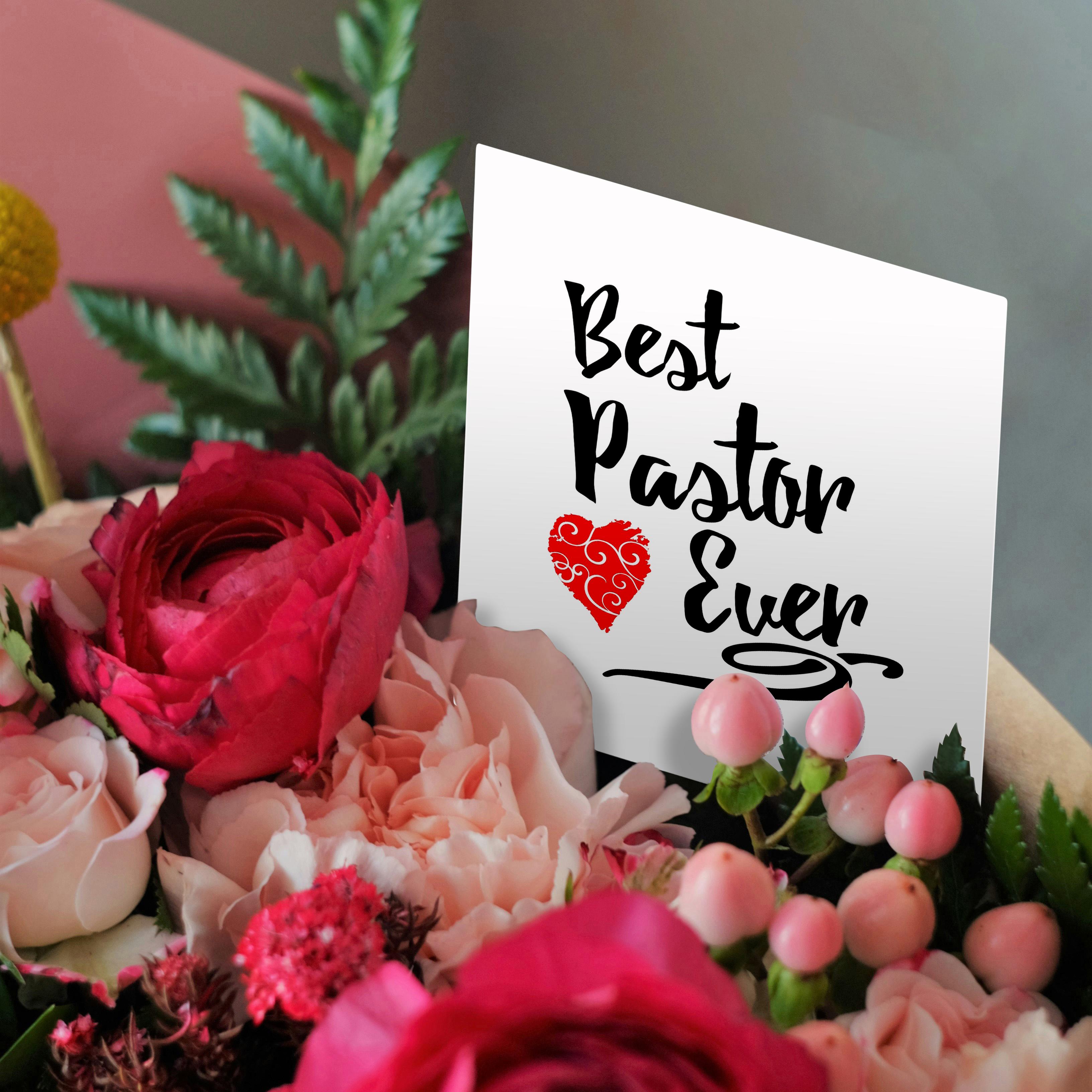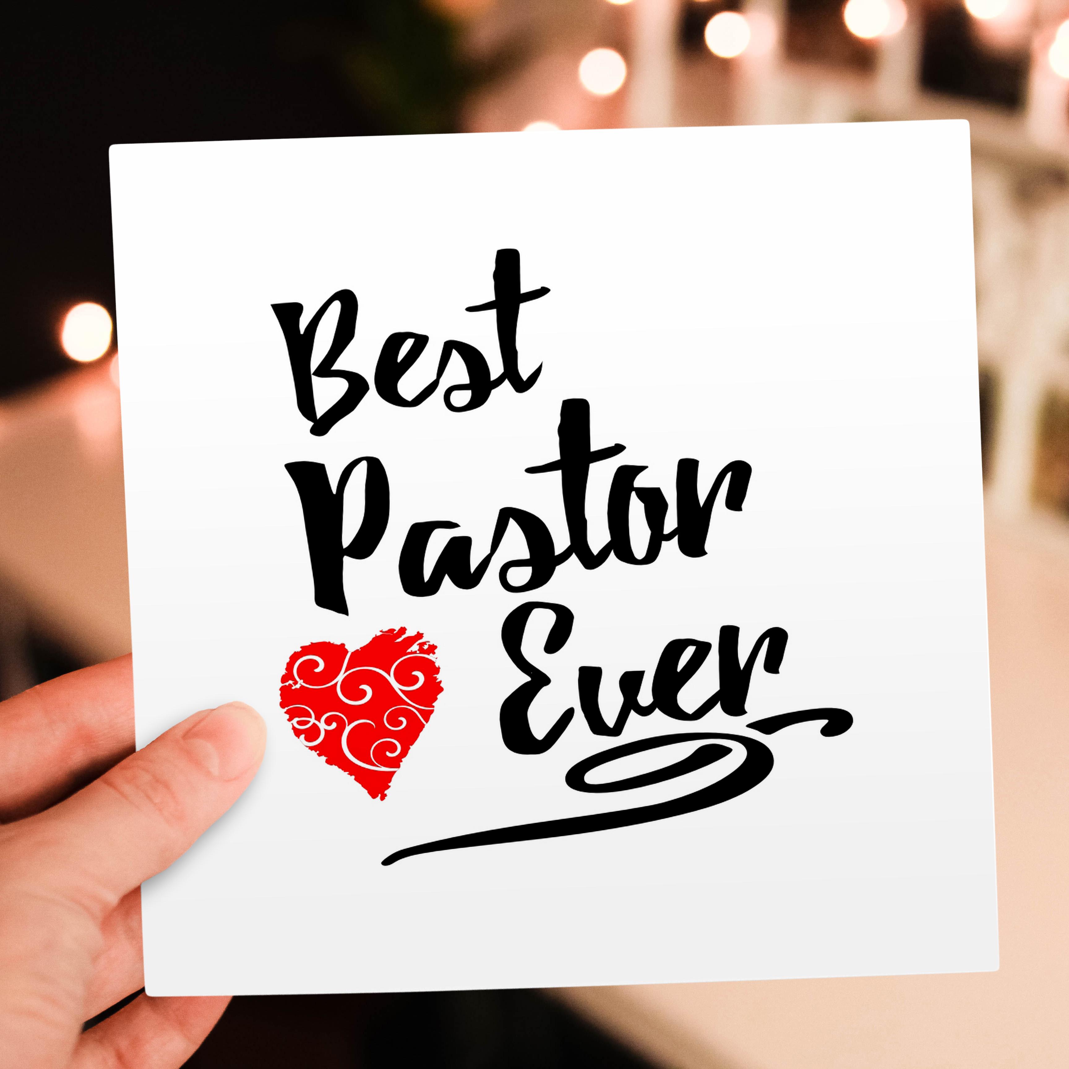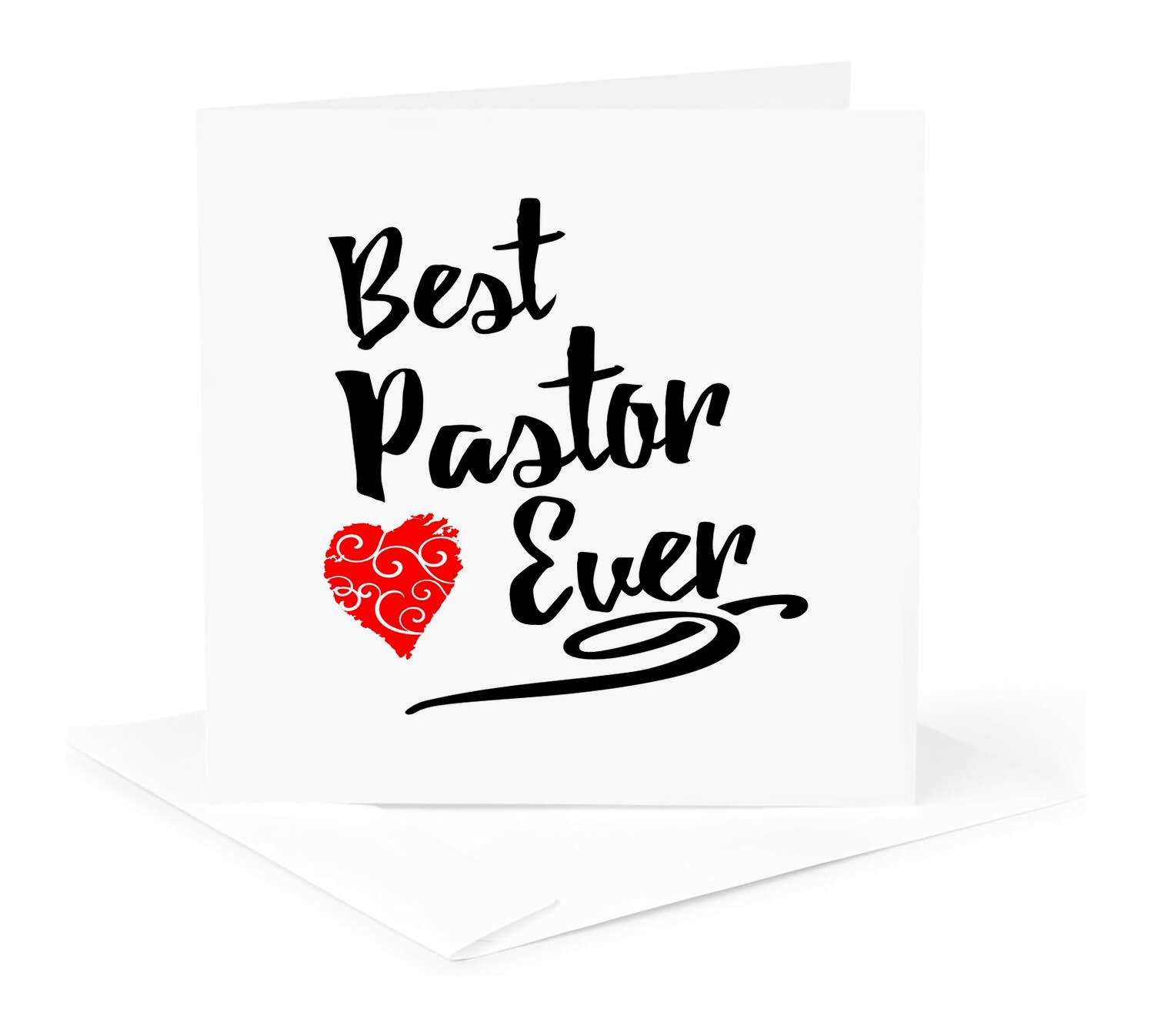 3dRose Russ Billington Designs - Best Pastor Ever Design in Black Script with Red Heart Motif - Greeting Cards (gc_241103)