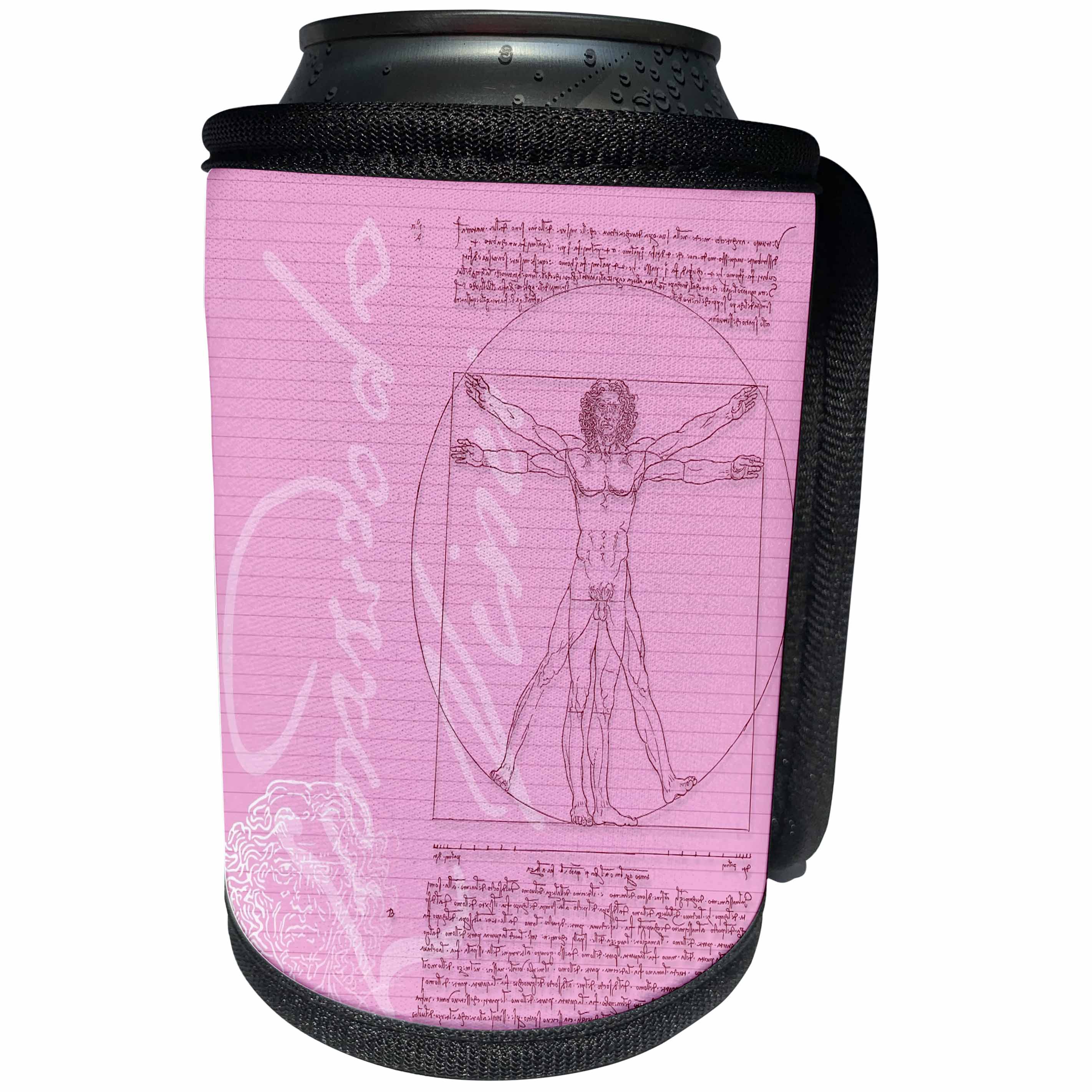 3dRose Russ Billington Designs - Leonardo da Vinci Vitruvian Man Design in Pink and White - Can Cooler Bottle Wrap (cc_219242)