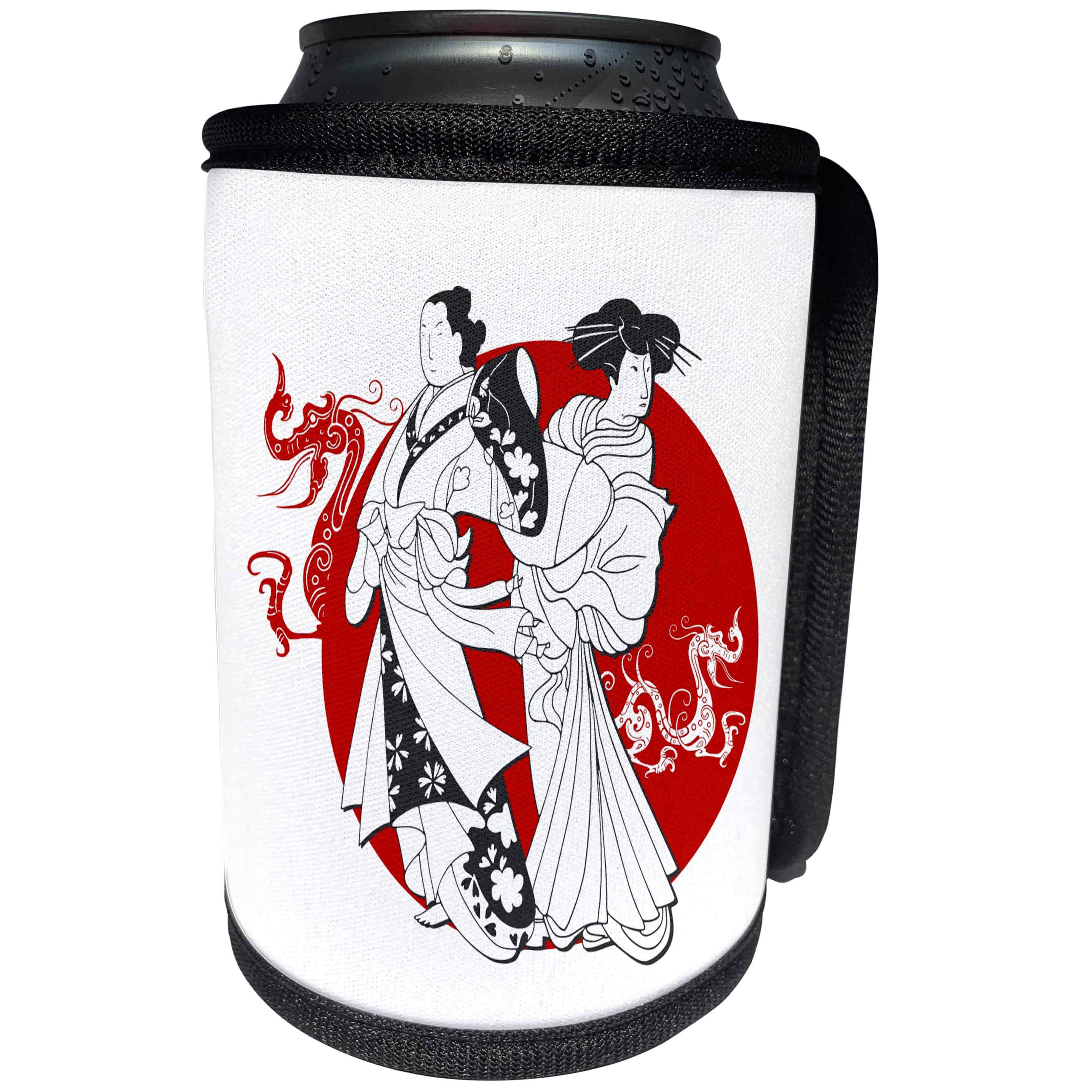 3dRose Russ Billington Designs - Stylish Japanese Couple over Red Sun and Dragon Background - Can Cooler Bottle Wrap (cc_219282)