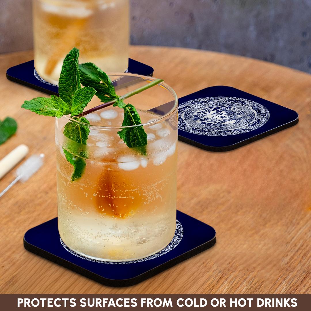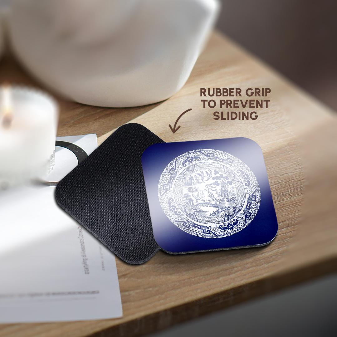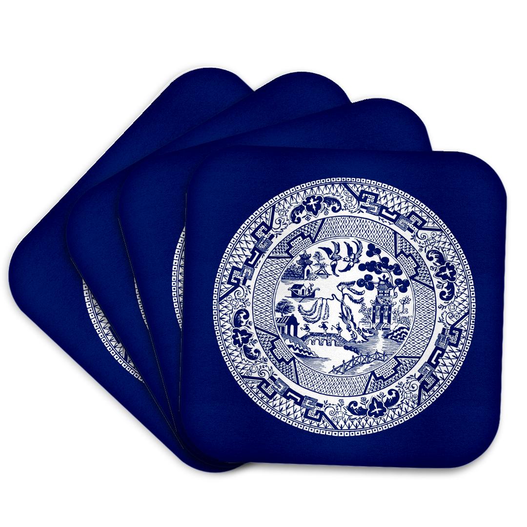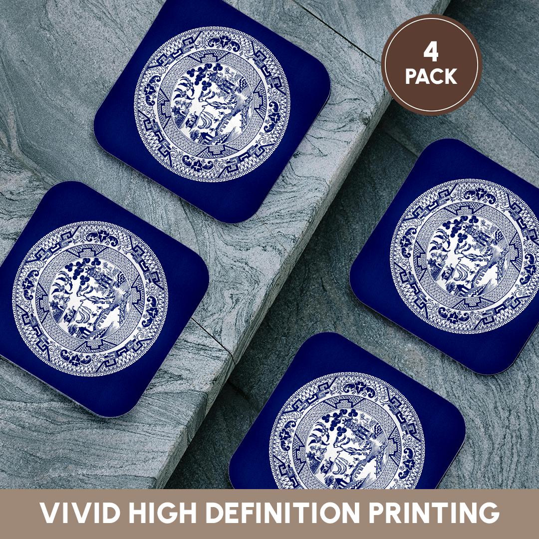 3dRose Russ Billington Designs - Willow Pattern in Delft Blue and White - Coasters