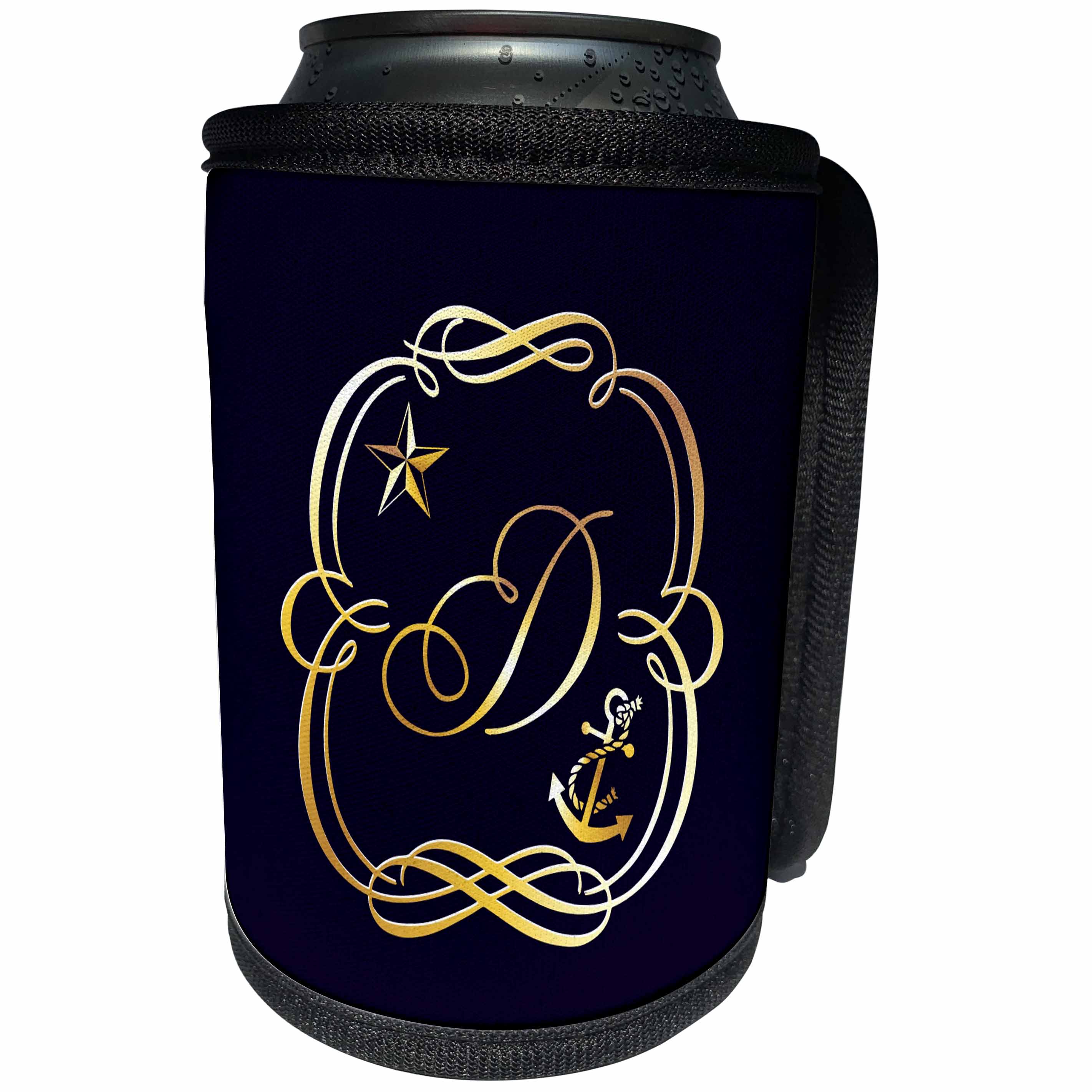 3dRose Russ Billington Monograms-Star and Anchor Letter D - Image of Nautical Monogram Letter D with Star and Anchor- not foil - Can Cooler Bottle Wrap (cc_298848)