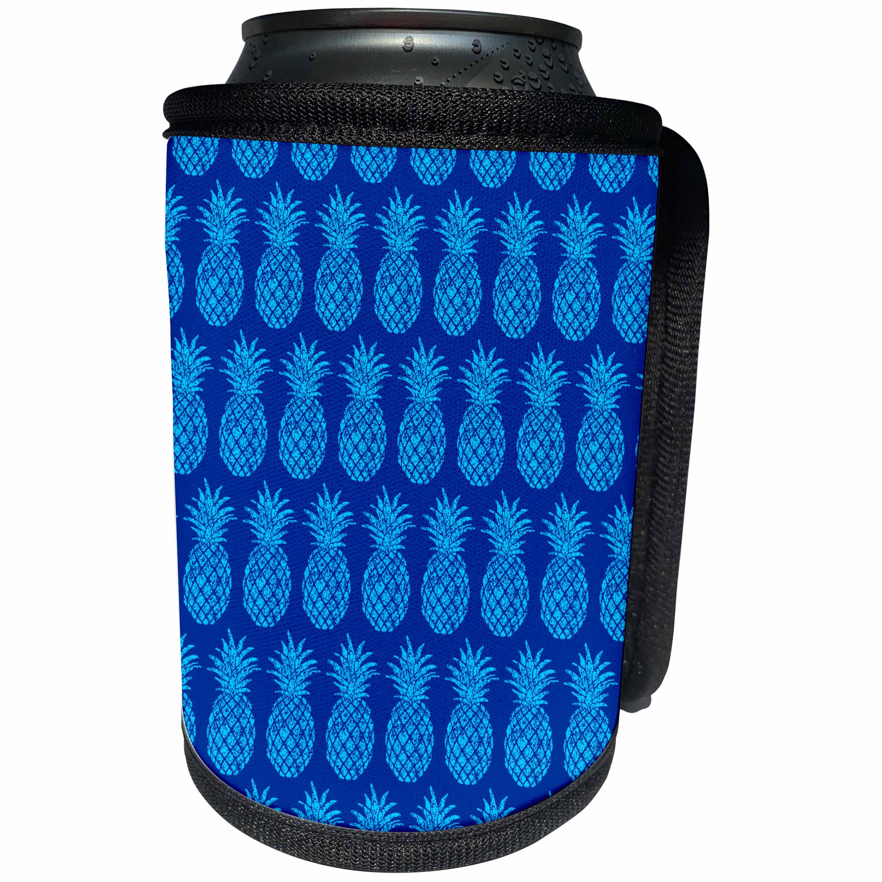 3dRose Russ Billington Patterns - Cool Tropical Pineapple Pattern in two tone Blue - Can Cooler Bottle Wrap (cc_219264)