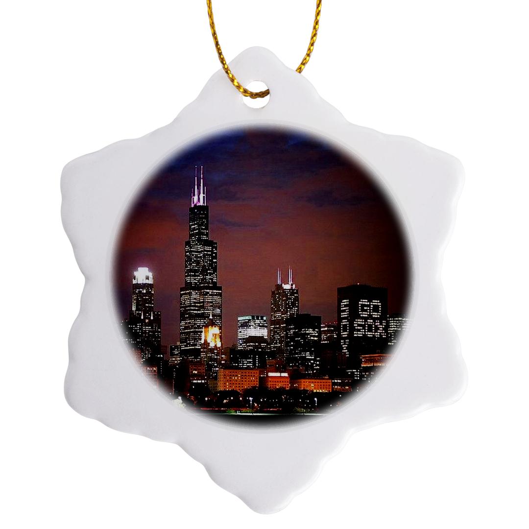 3dRose Sandy Mertens Illinois - Chicago Skyline at Night - Ornaments (ORN_26369)