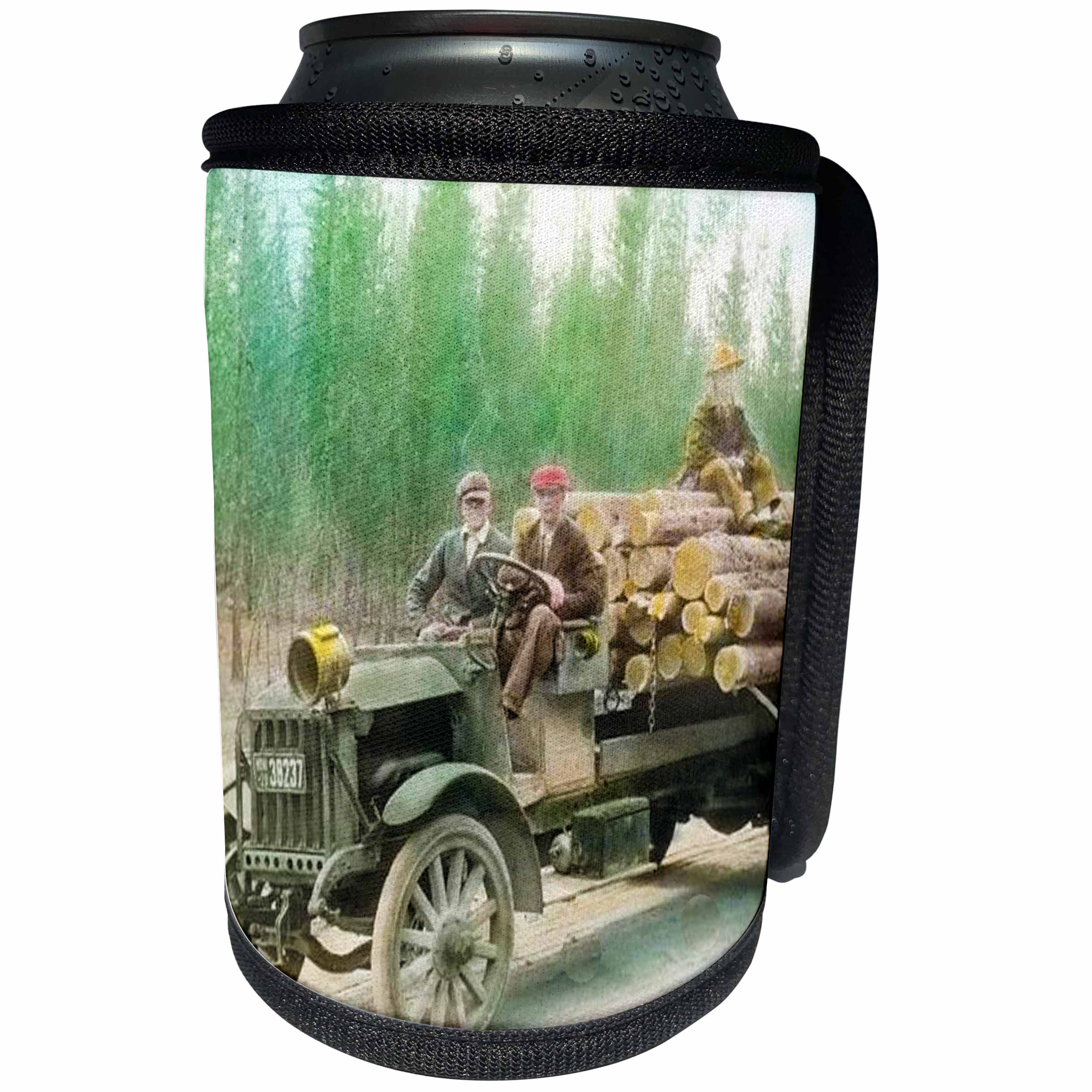 3dRose Scenes from the Past Magic Lantern - Vintage Logging Truck Hand Colored Magic Lantern Slide - Can Cooler Bottle Wrap (cc_246439)