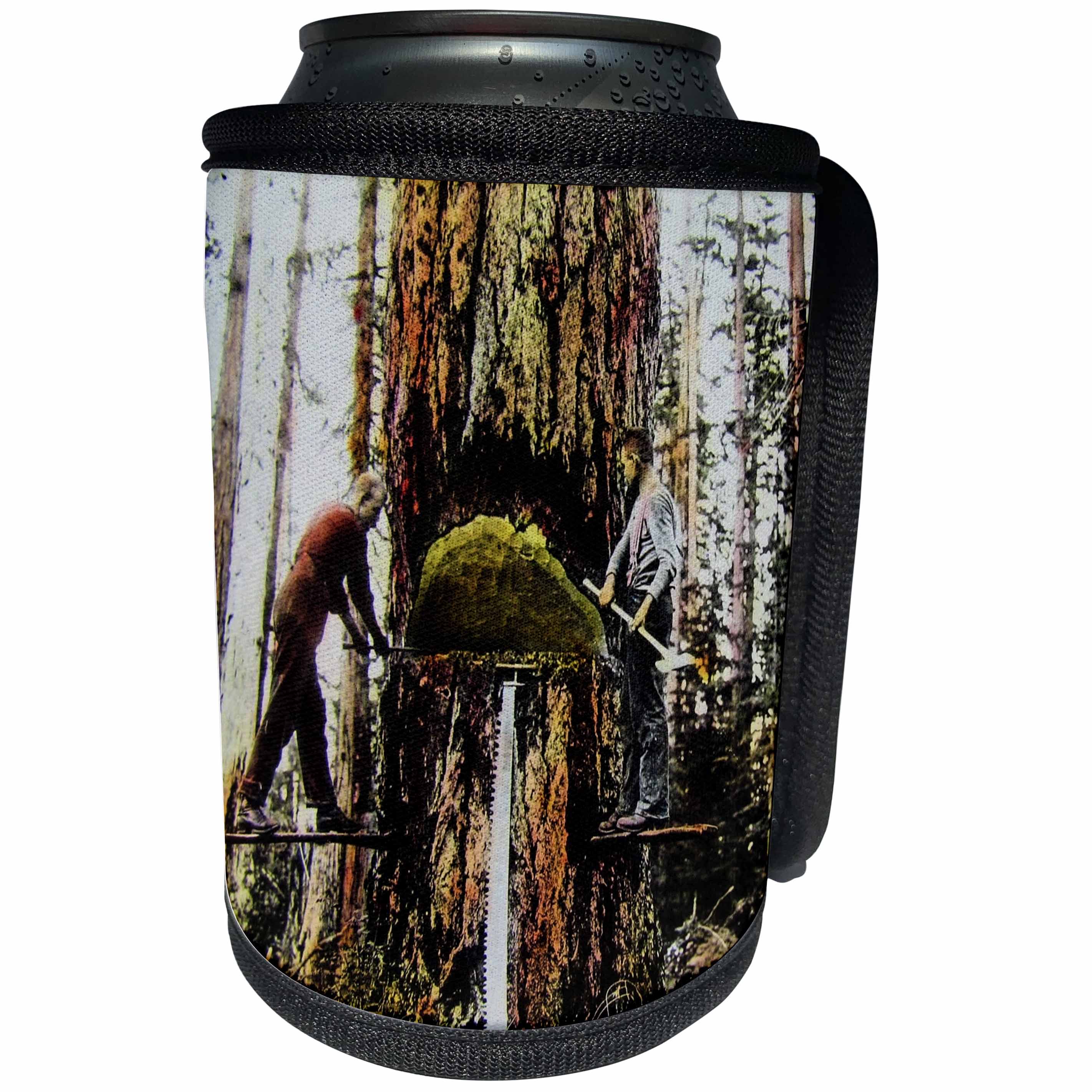 3dRose Scenes from the Past Magic Lantern - Vintage Lumberjacks Felling Large Oak Vancouver Canada Hand Colored - Can Cooler Bottle Wrap (cc_246402)