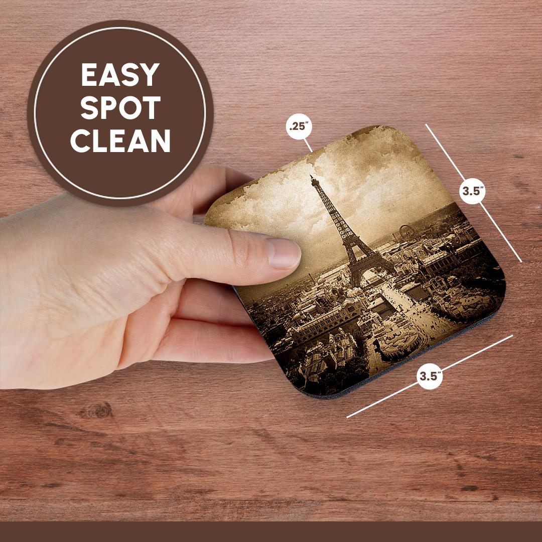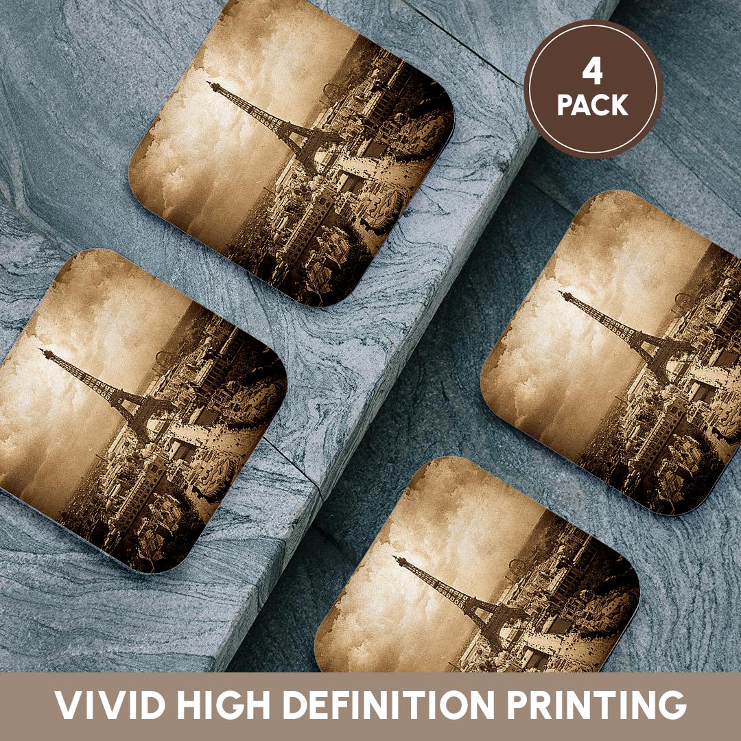 3dRose Scenes from the Past Vintage Stereoview - The Paris Exposition 1900 Eiffel Tower Sepia - Coasters (cst_77454)