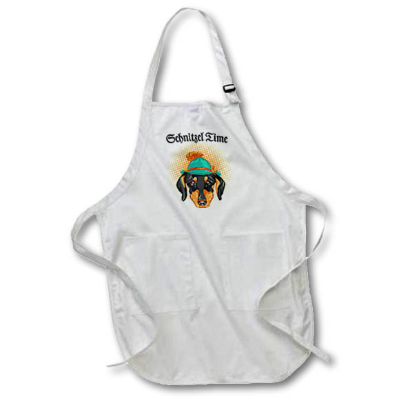 3dRose Schnitzel Time Funny Dachshund with German Hat Doxie Lover - Aprons (apr_339110)