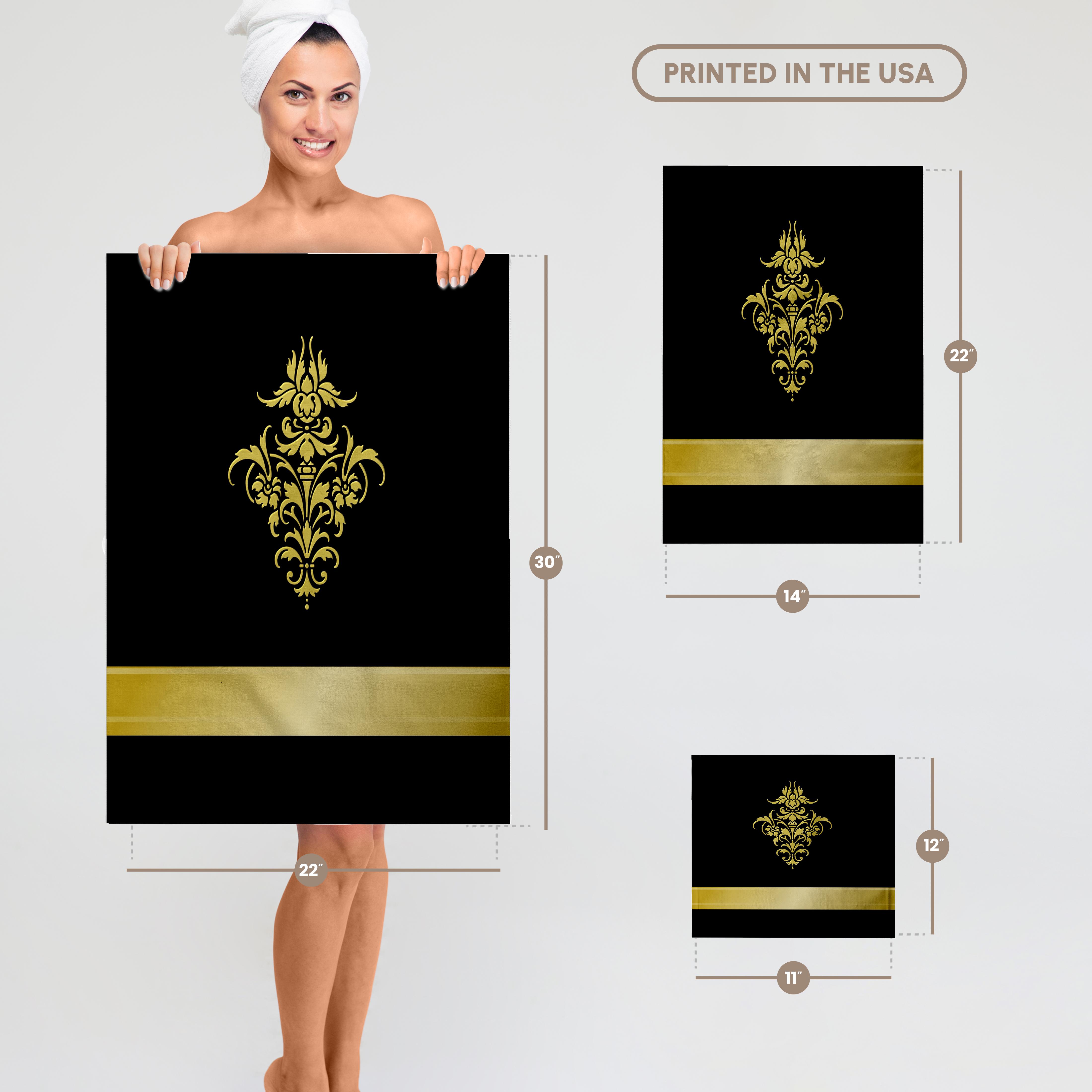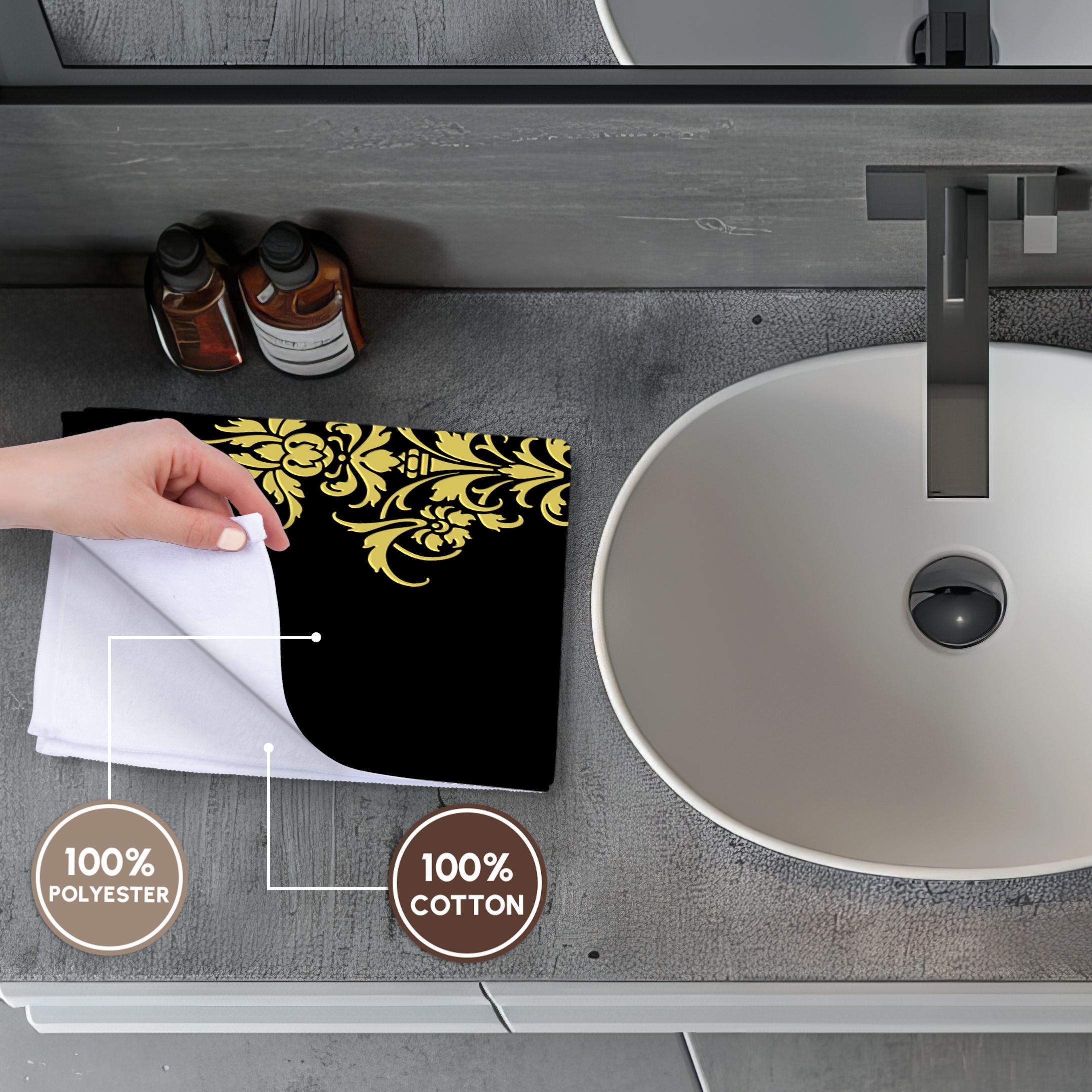 3dRose Stylish Faux Gold Effect Damask Element on Black Background - Towels (twl-219215)