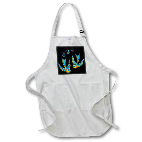 Apron - Tattoo Style Swallows In Blue and Yellow On Black Vector Art - Dragonfly