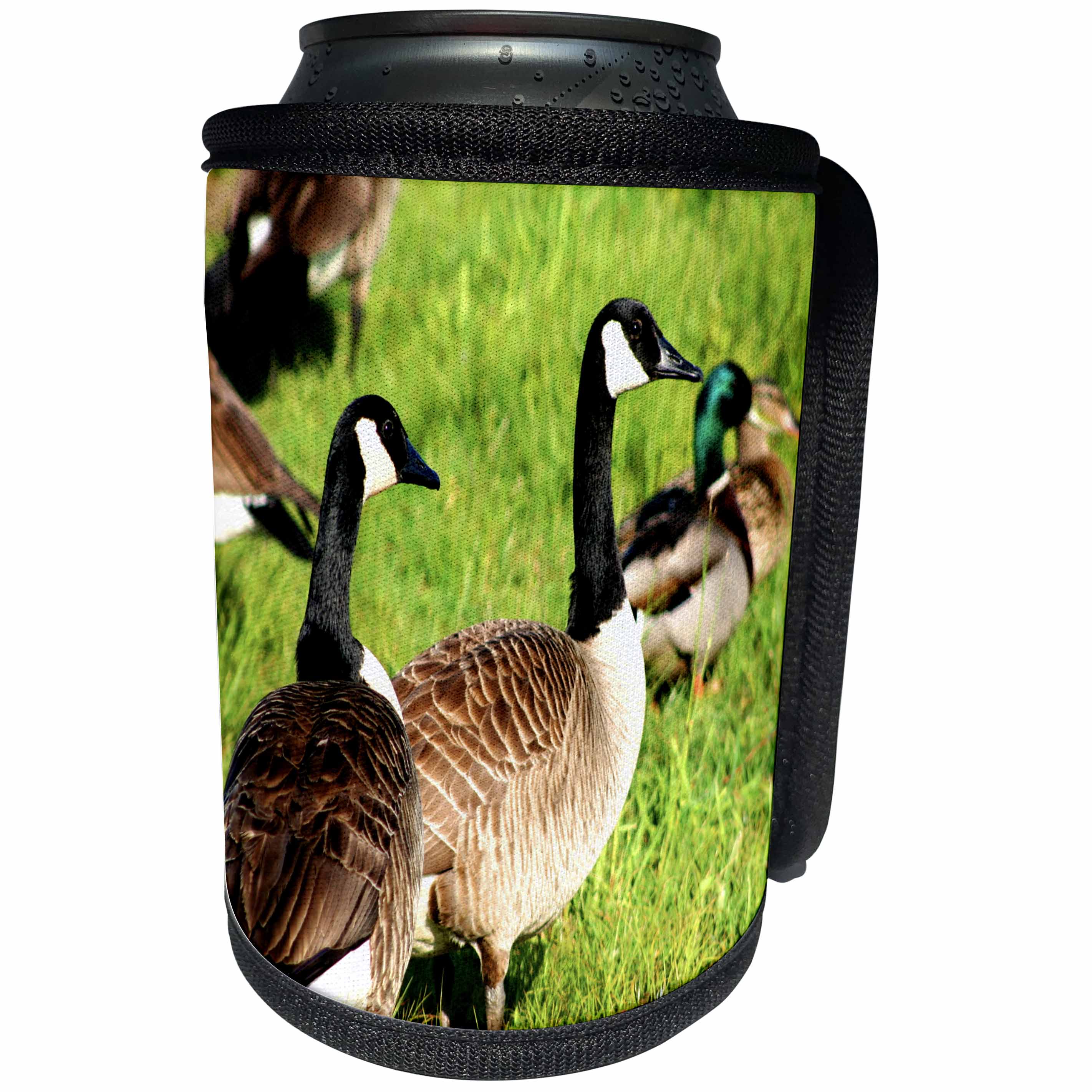 3dRose TDSwhite – Miscellaneous Photography - Canadian Geese Family Walks Through Grass - Can Cooler Bottle Wrap (cc_296435)