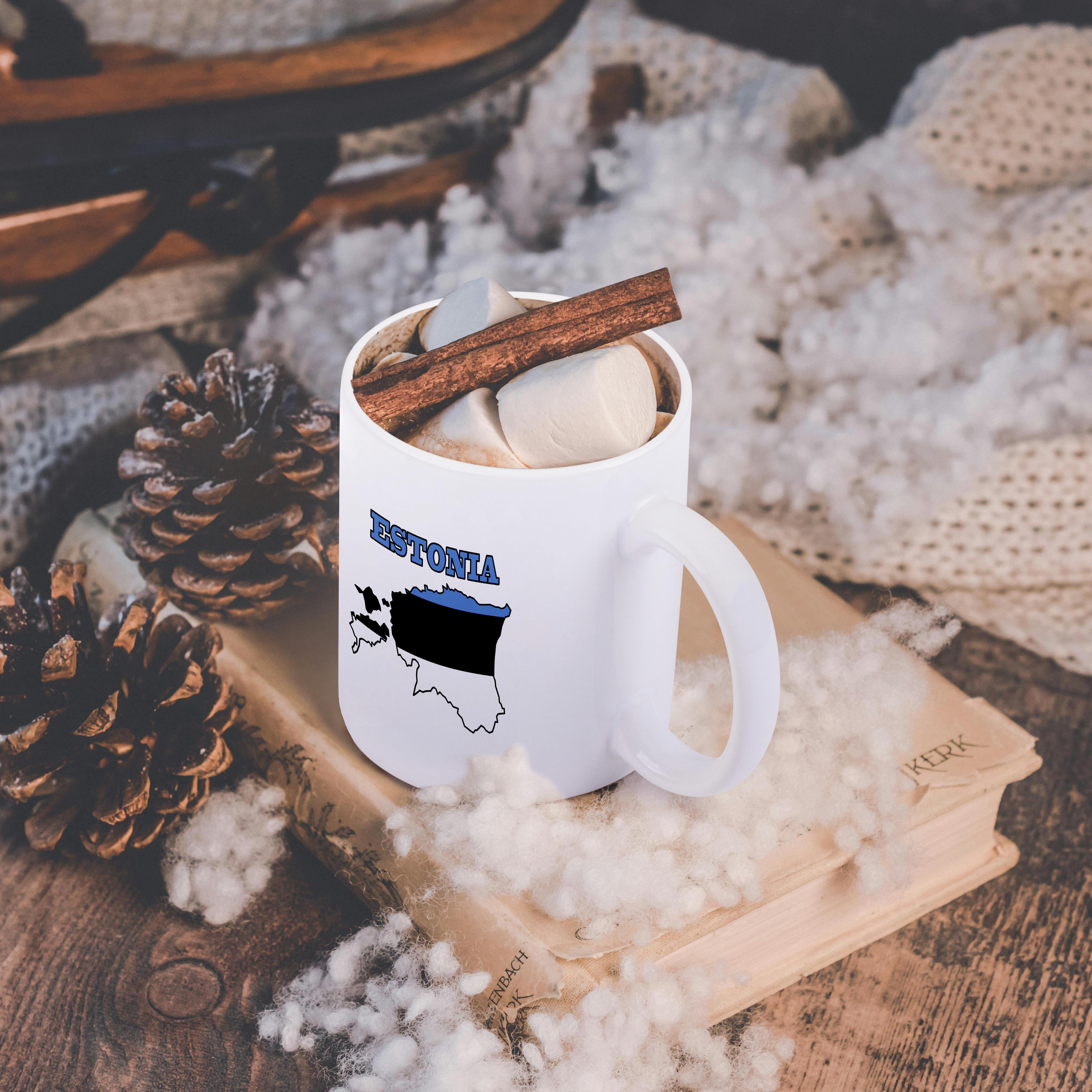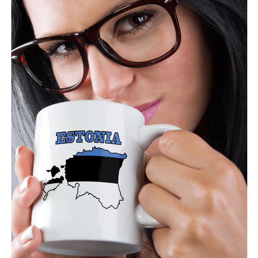 3dRose The flag of Estonia in the outline map of the country and name, Estonia - Mugs (mug_58798)