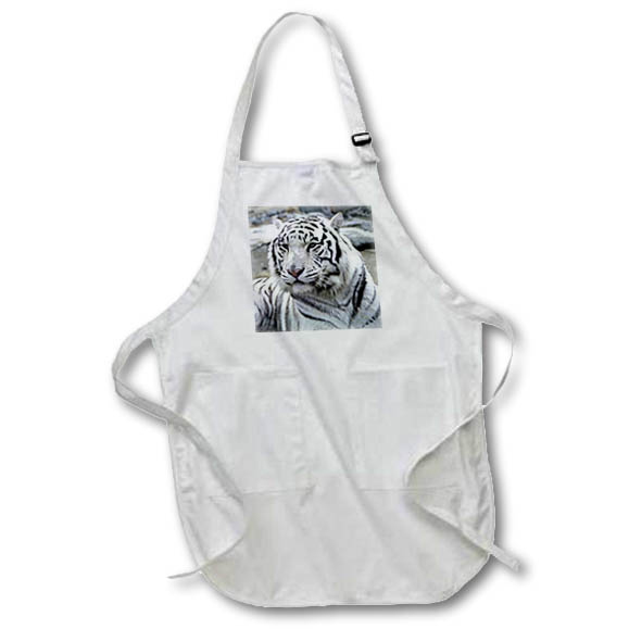 White Tiger Apron is made of a 65/35 poly/cotton blend. Whether it is put to use in a restaurant or at home, this apron will always help to keep you clean. Full length features adjustable neck strap. Medium length features non-adjustable neck strap that fits over your head. Both sizes also tie around the waist.