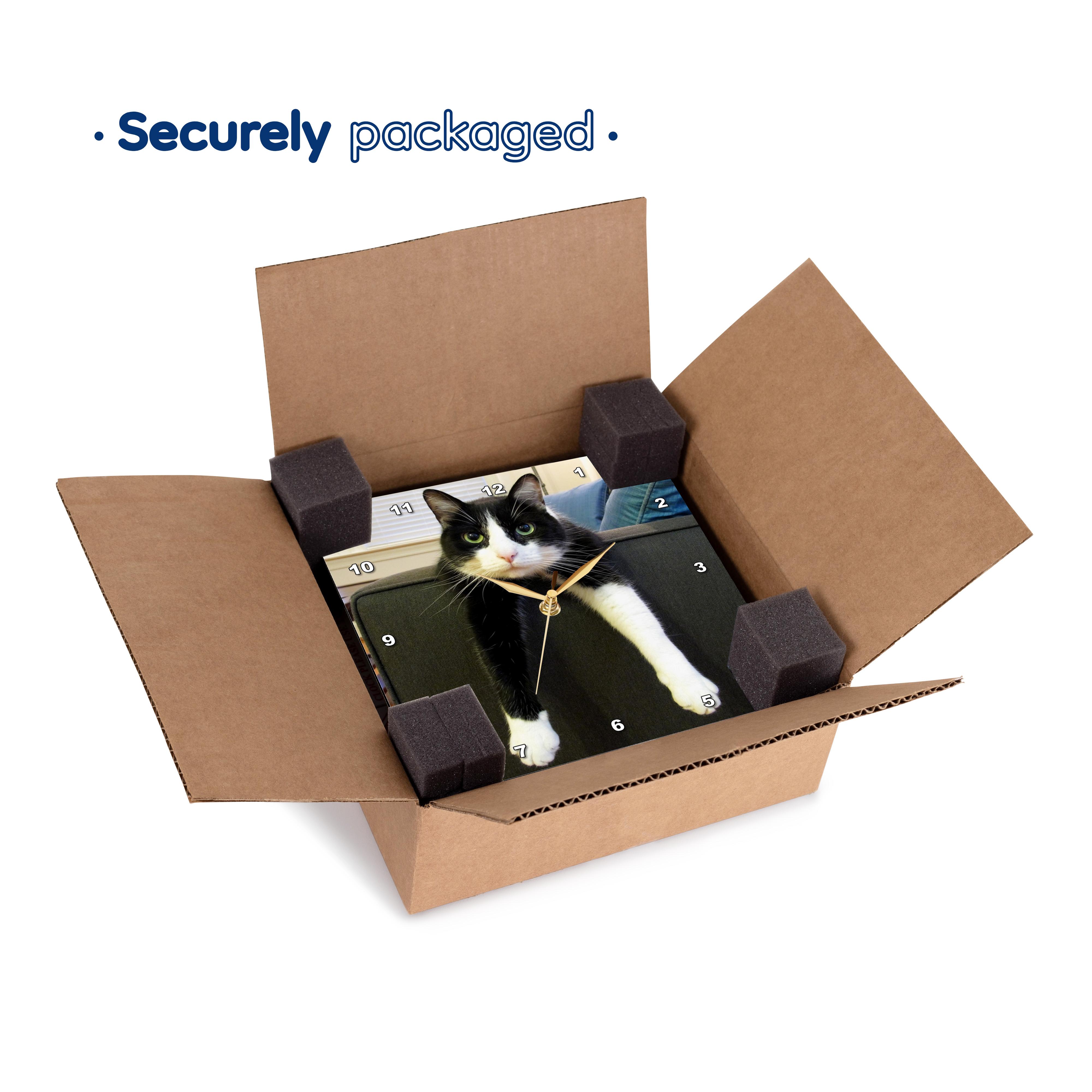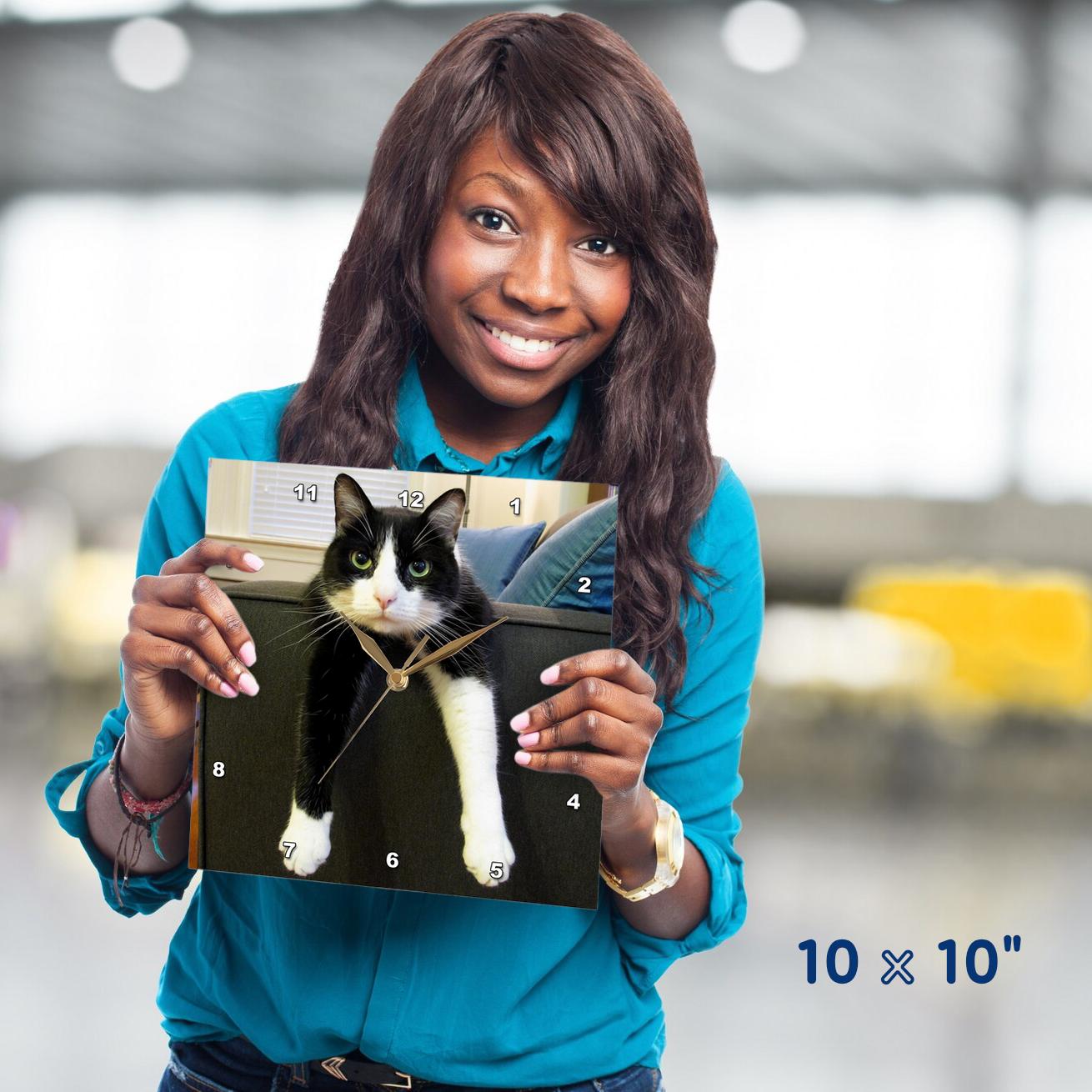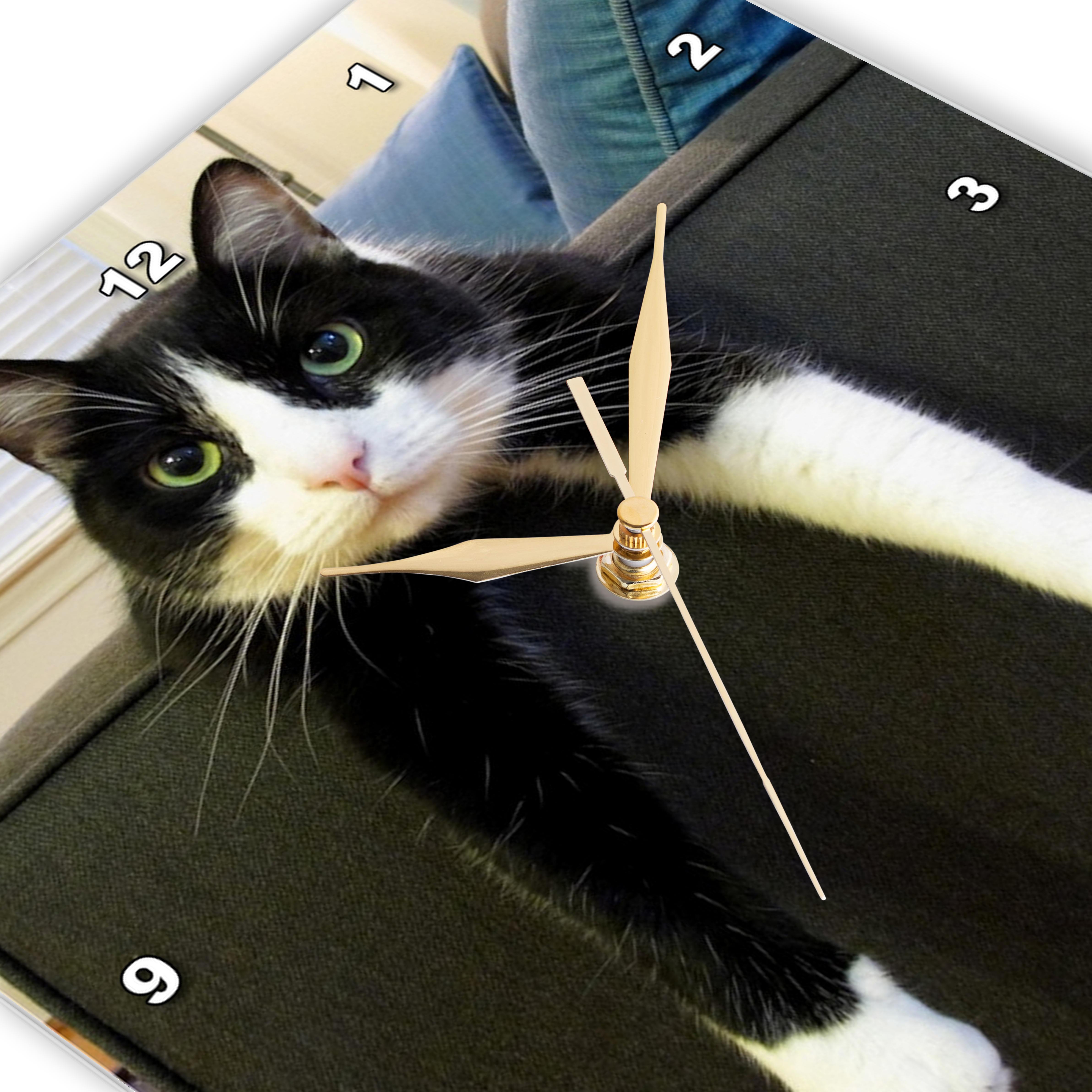 3dRose TNMGraphics Animals - Black and White Cat with Nothing to Do - Wall Clocks (DPP_23450)