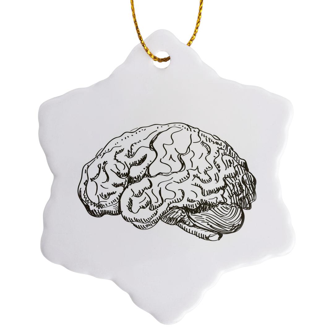 Brain Ornament is a perfect addition to your tree or as a window decoration. This glossy porcelain ornament is a great gift for family and friends, commemorating each holiday or special occasion. Image printed on both sides; measures 3 inches. A strand of gold thread makes it easy to display this fantastic keepsake.