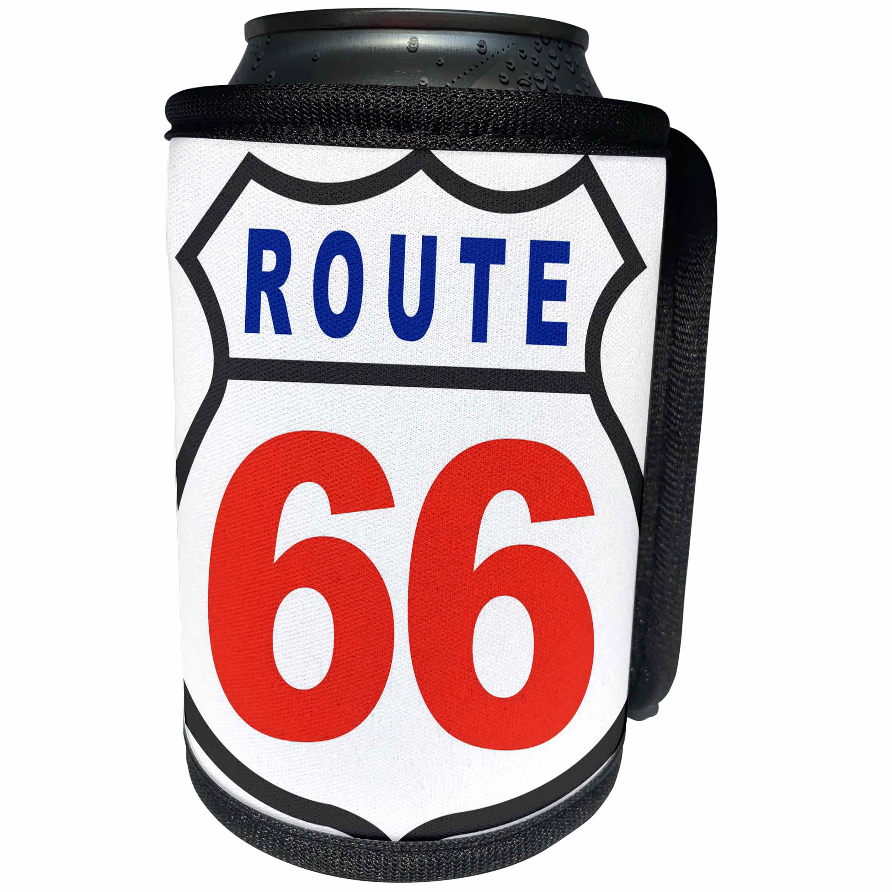 3dRose TNMPastPerfect Retro - Red White and Blue Route 66 - Can Cooler Bottle Wrap (cc_124193)