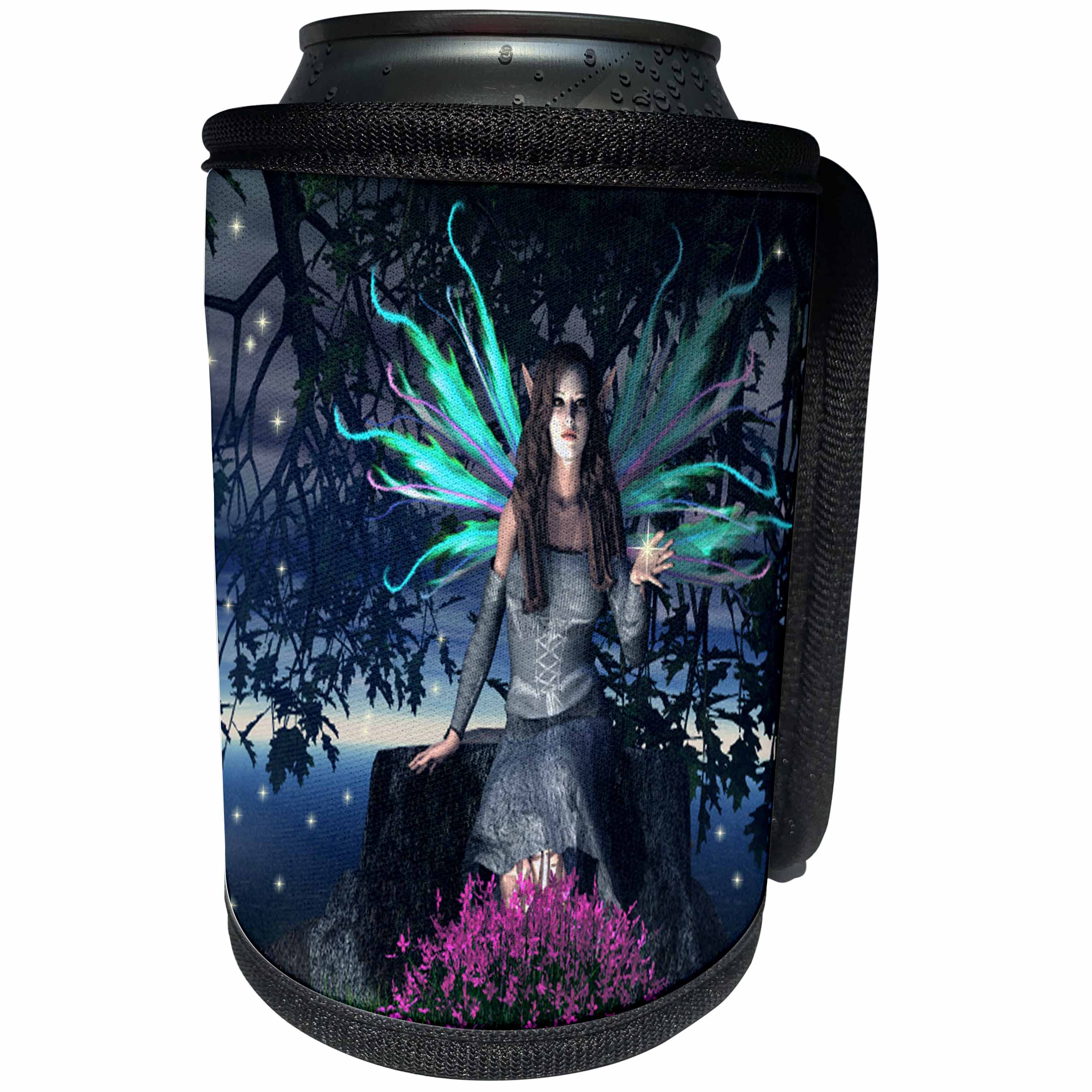 3dRose WhiteOak Art Designs Fairy Prints - This Moment A Fairy sitting on a stump - Can Cooler Bottle Wrap (cc_22523)