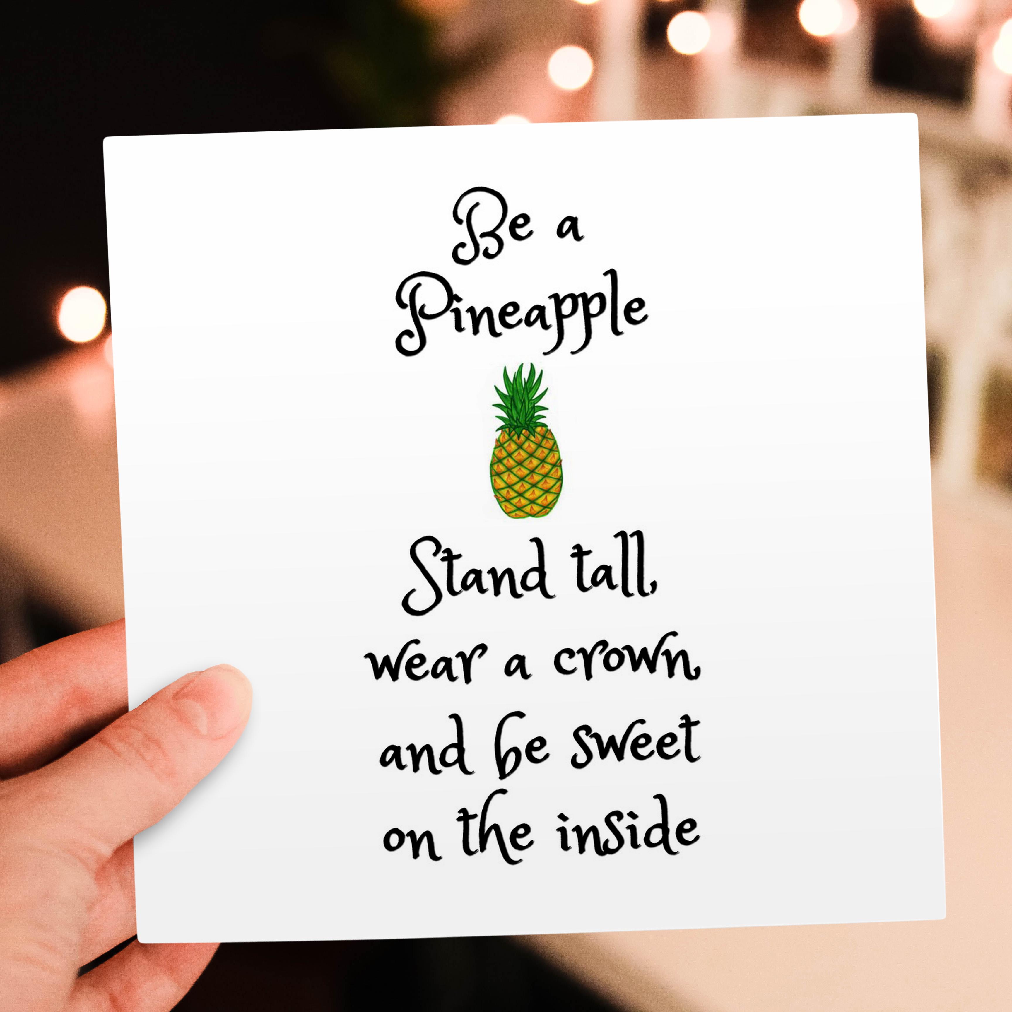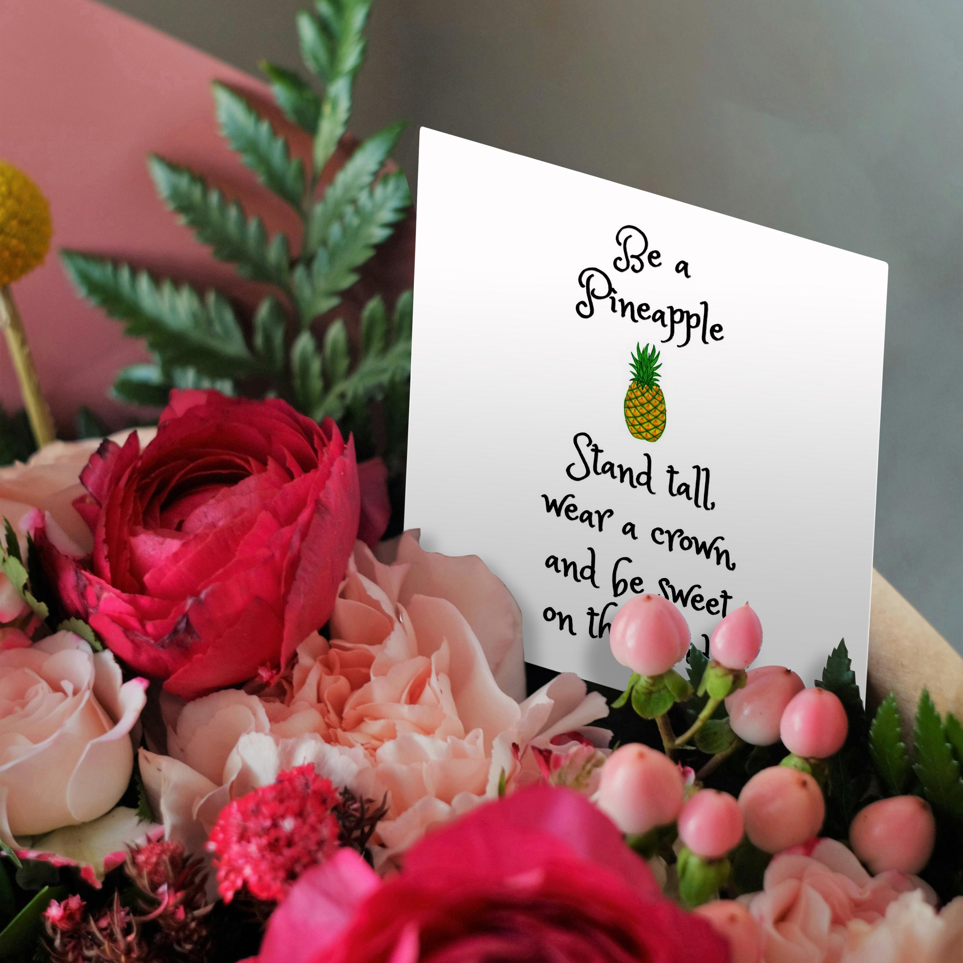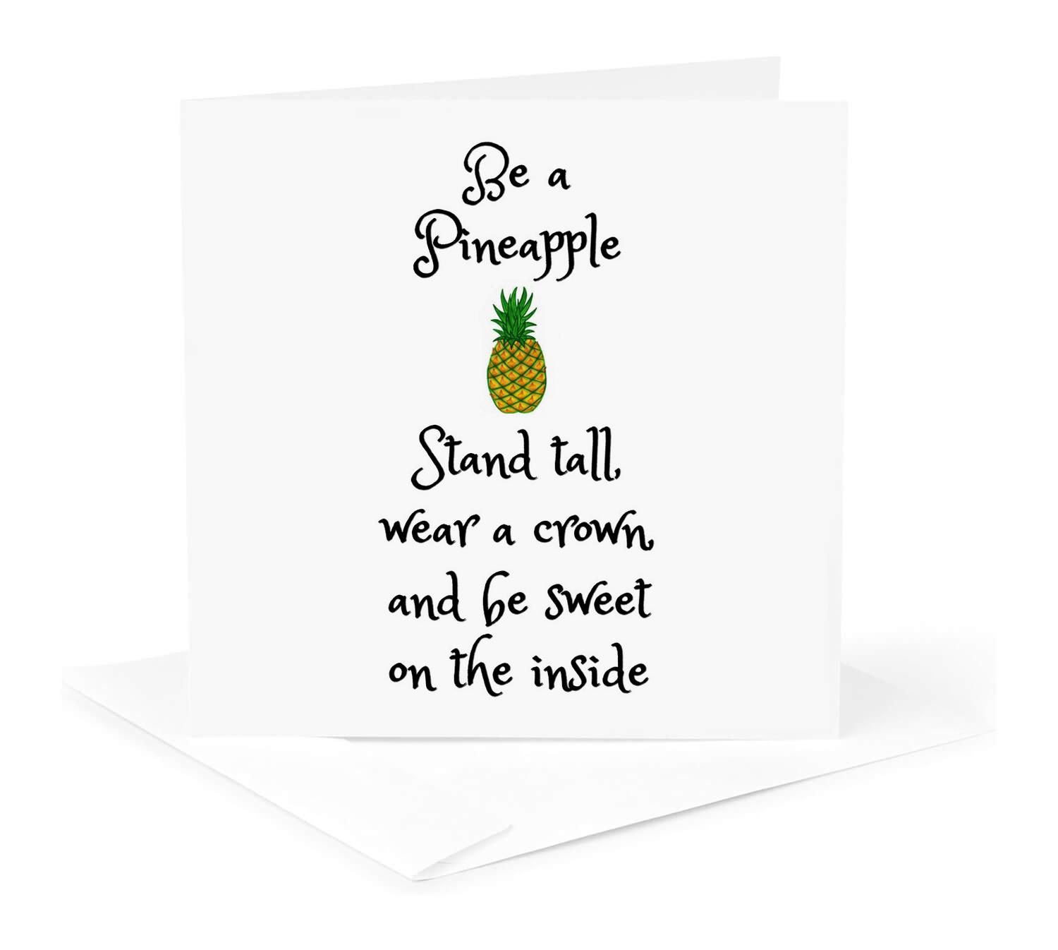 3dRose Xander Funny Quotes - Be a Pineapple, Stand Tall wear a Crown and be Sweet, Pineapple Picture - Greeting Cards (gc_253912)