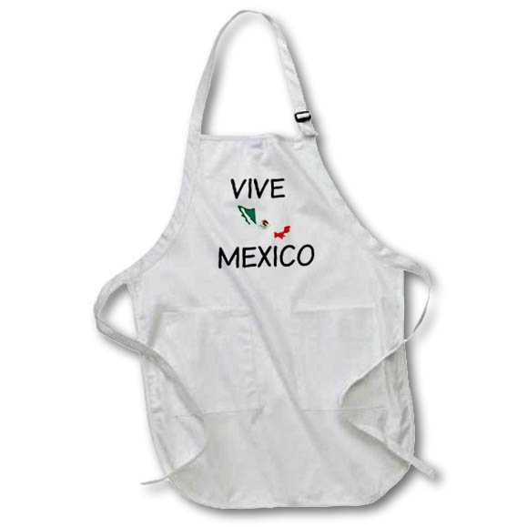 Print of Vive Mexico Apron is made of a 65/35 poly/cotton blend. Whether it is put to use in a restaurant or at home, this apron will always help to keep you clean. Full length features adjustable neck strap. Medium length features non-adjustable neck strap that fits over your head. Both sizes also tie around the waist.