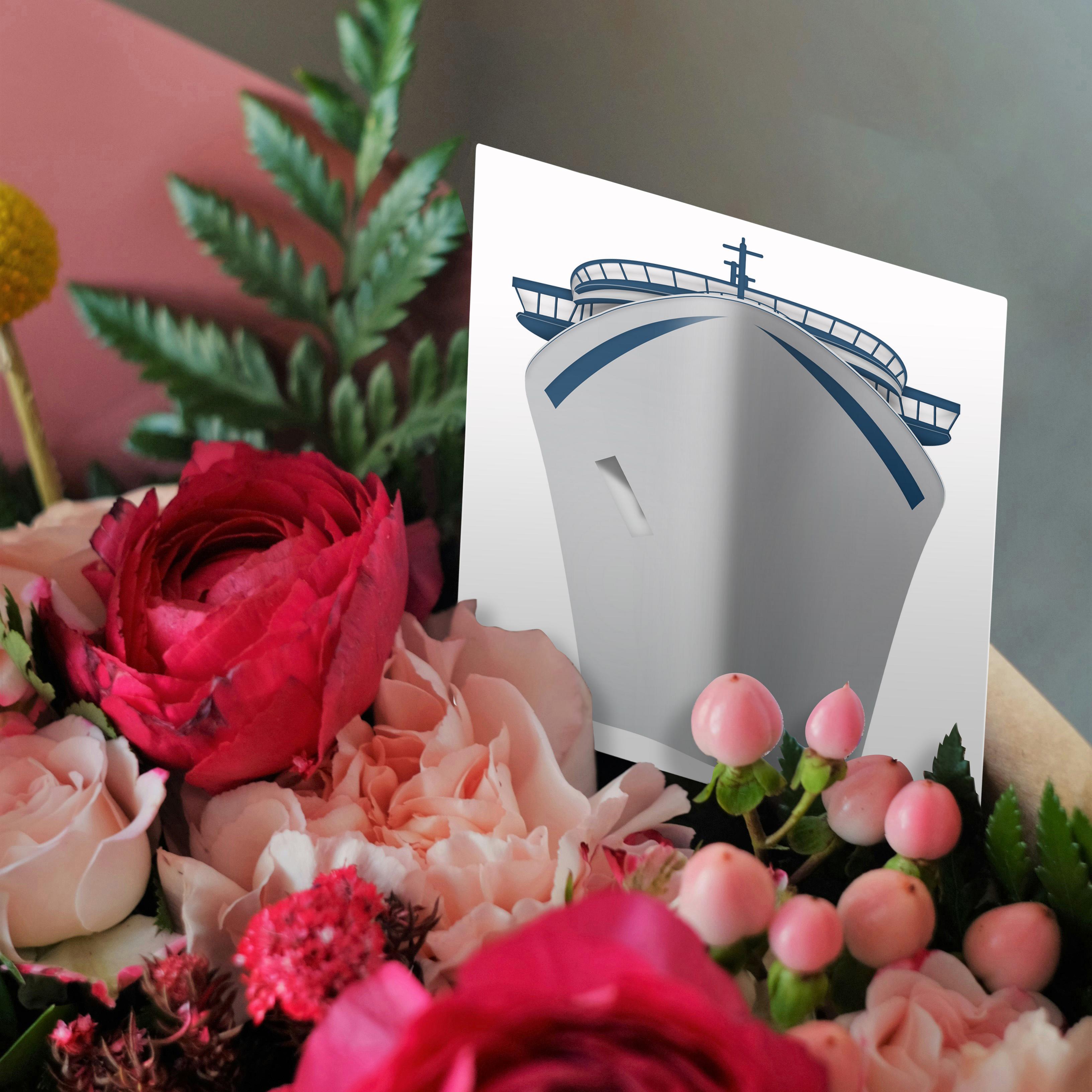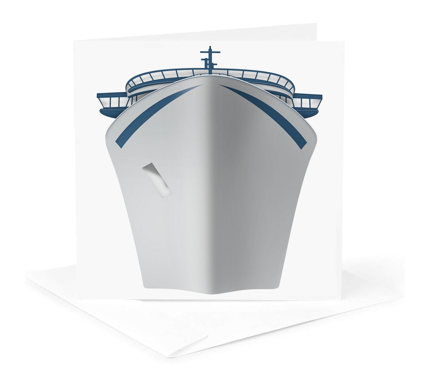 Blue and White Cruise Ship Greeting Card is a great way to say "thank you" or to acknowledge any occasion. These blank cards are made of heavy-duty card stock that allows for smudge free writing. Cards are creased for easy folding and come with white envelopes. Available individually or in sets of 6 and 12. Made in USA.