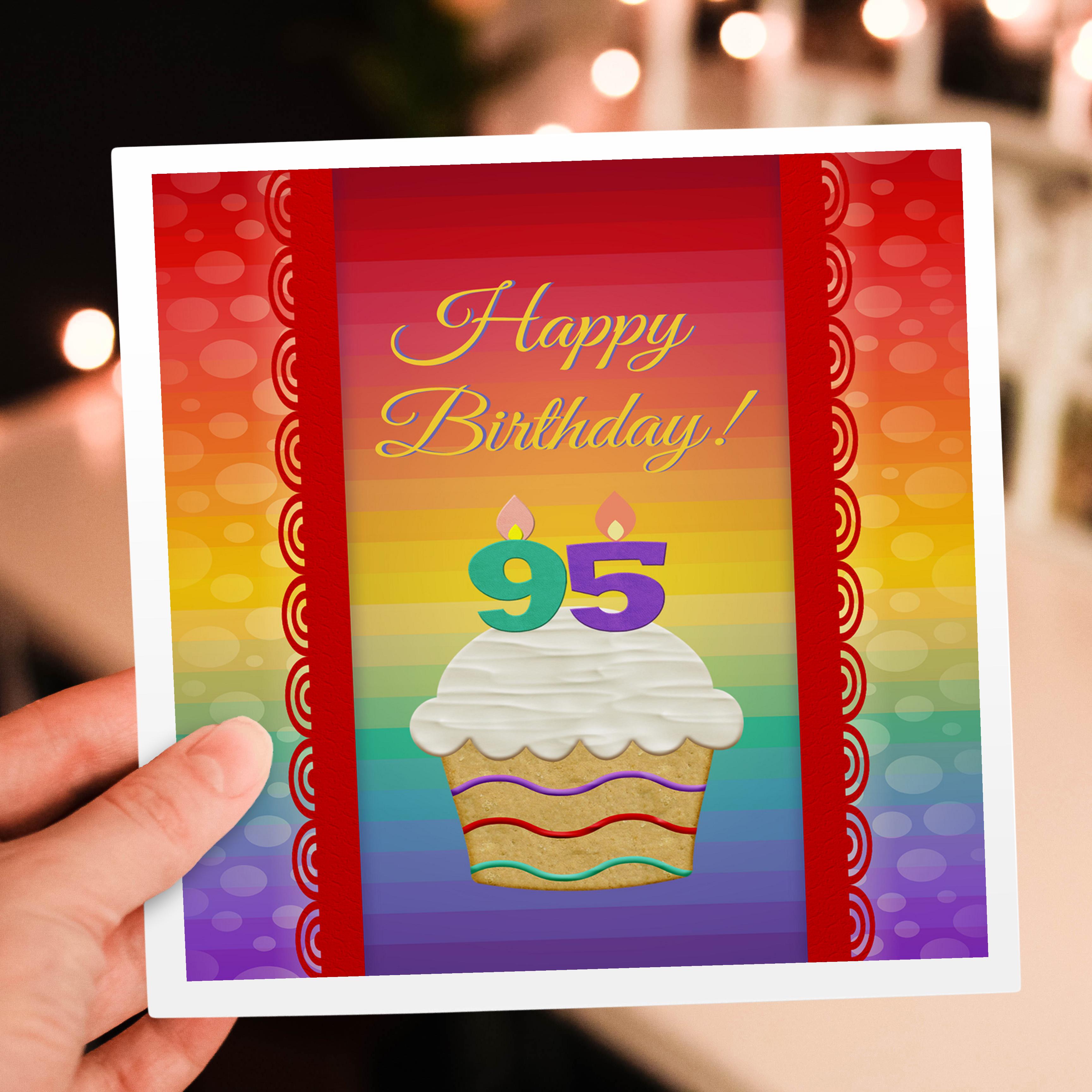 Beverly Turner Birthday Design - Cupcake with Number Candles, 95 Years Old Birthday - Greeting Cards