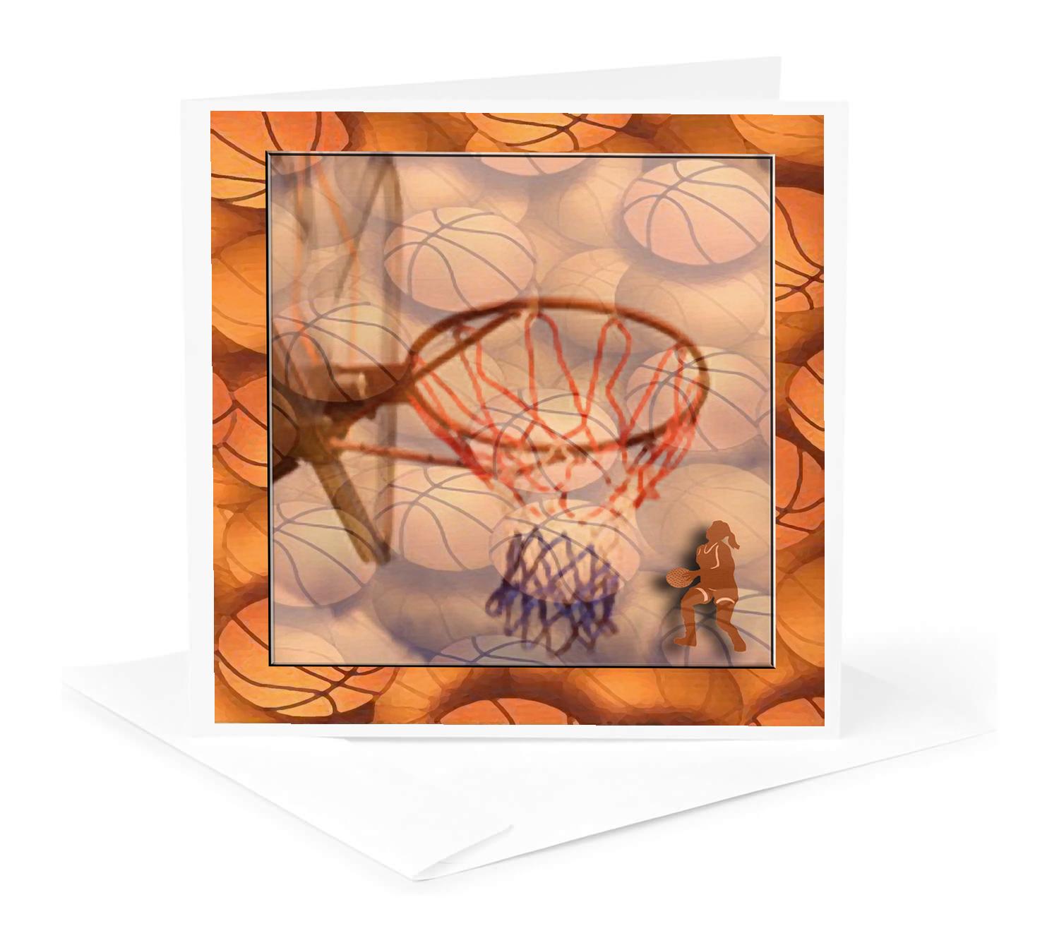 Girl Playing Basketball Greeting Card is a great way to say "thank you" or to acknowledge any occasion. These blank cards are made of heavy-duty card stock that allows for smudge free writing. Cards are creased for easy folding and come with white envelopes. Available individually or in sets of 6 and 12. Made in USA.