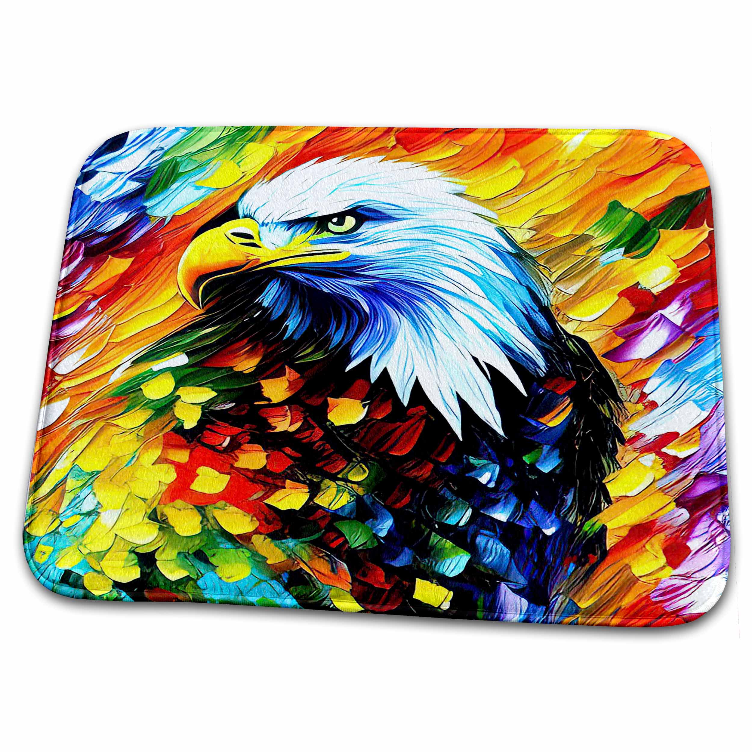Colorful artistic image of bald American eagle positive gift, card Dish Drying Mat is a high quality dish drying mat, 23" x 18" with 0.125" thickness. Printed with exquisite sublimated designs. Versatile for all types of countertops. Optimized for comfort and durability. Made of soft polyester.