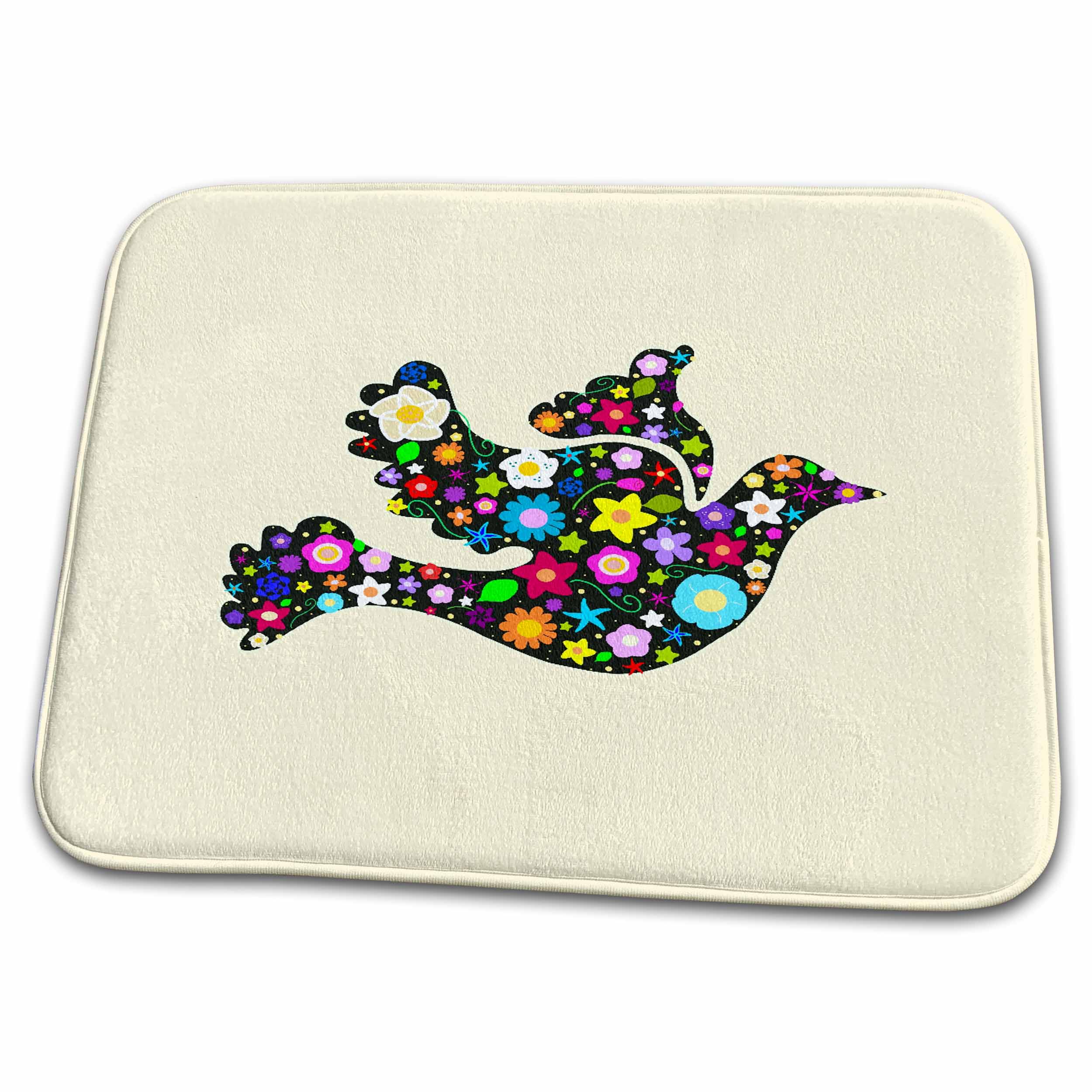 Floral black flying dove on pastel orange - flowery pretty girly spring flowers contemporary elegant Dish Drying Mat is a high quality dish drying mat, 23" x 18" with 0.125" thickness. Printed with exquisite sublimated designs. Versatile for all types of countertops. Optimized for comfort and durability. Made of soft polyester.