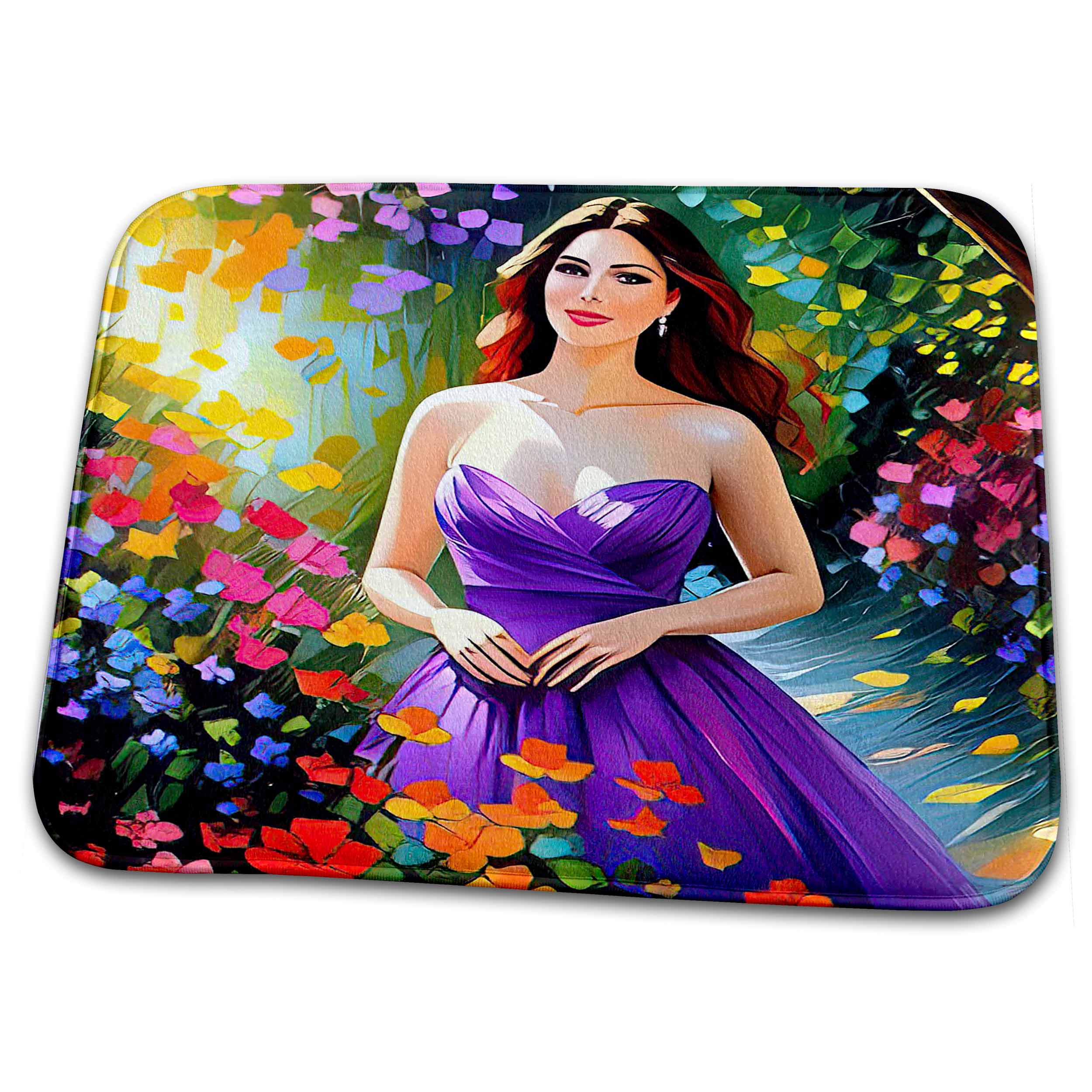 Smiling young lady in purple dress in the flower garden. Awesome gift Dish Drying Mat is a high quality dish drying mat, 23" x 18" with 0.125" thickness. Printed with exquisite sublimated designs. Versatile for all types of countertops. Optimized for comfort and durability. Made of soft polyester.