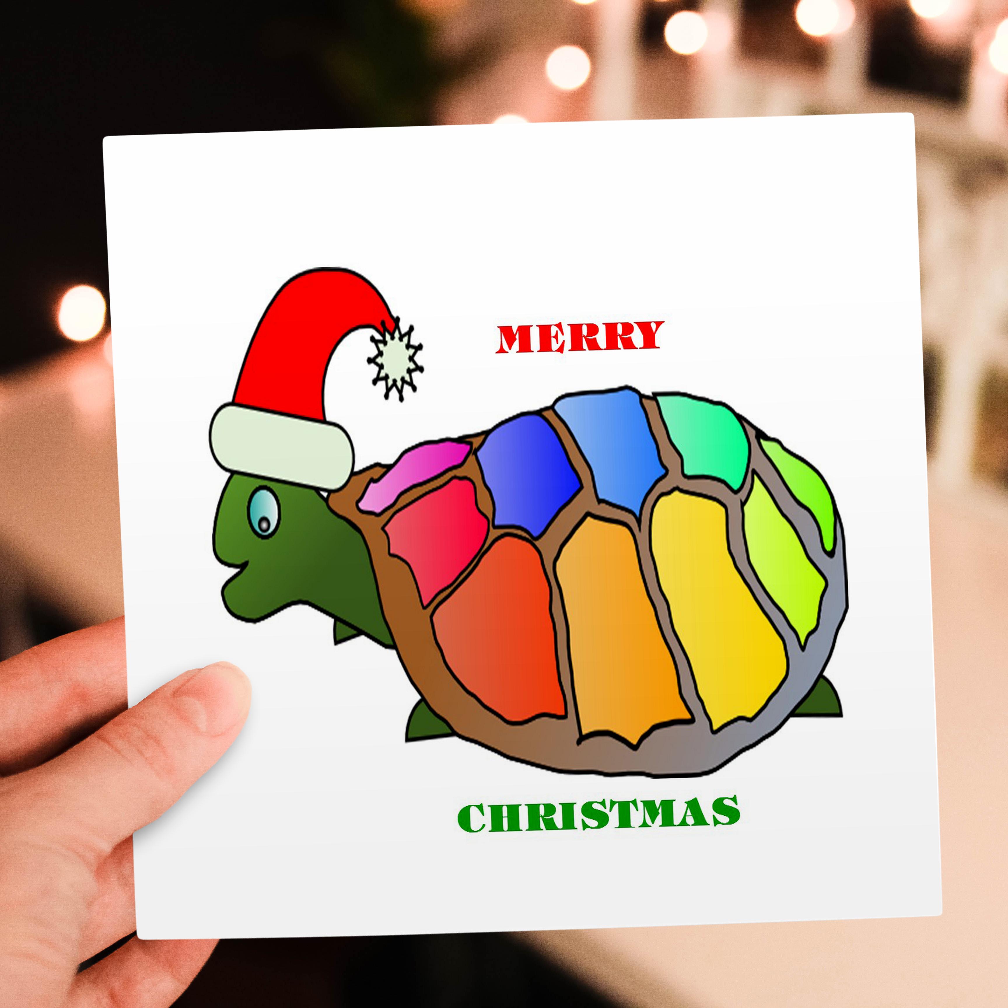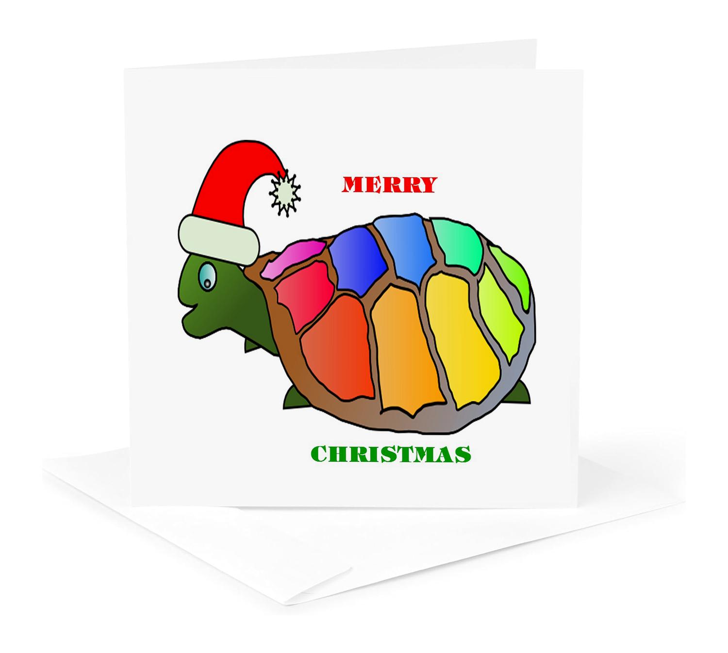 Christmas Turtle Greeting Card is a great way to say "thank you" or to acknowledge any occasion. These blank cards are made of heavy-duty card stock that allows for smudge free writing. Cards are creased for easy folding and come with white envelopes. Available individually or in sets of 6 and 12. Made in USA.