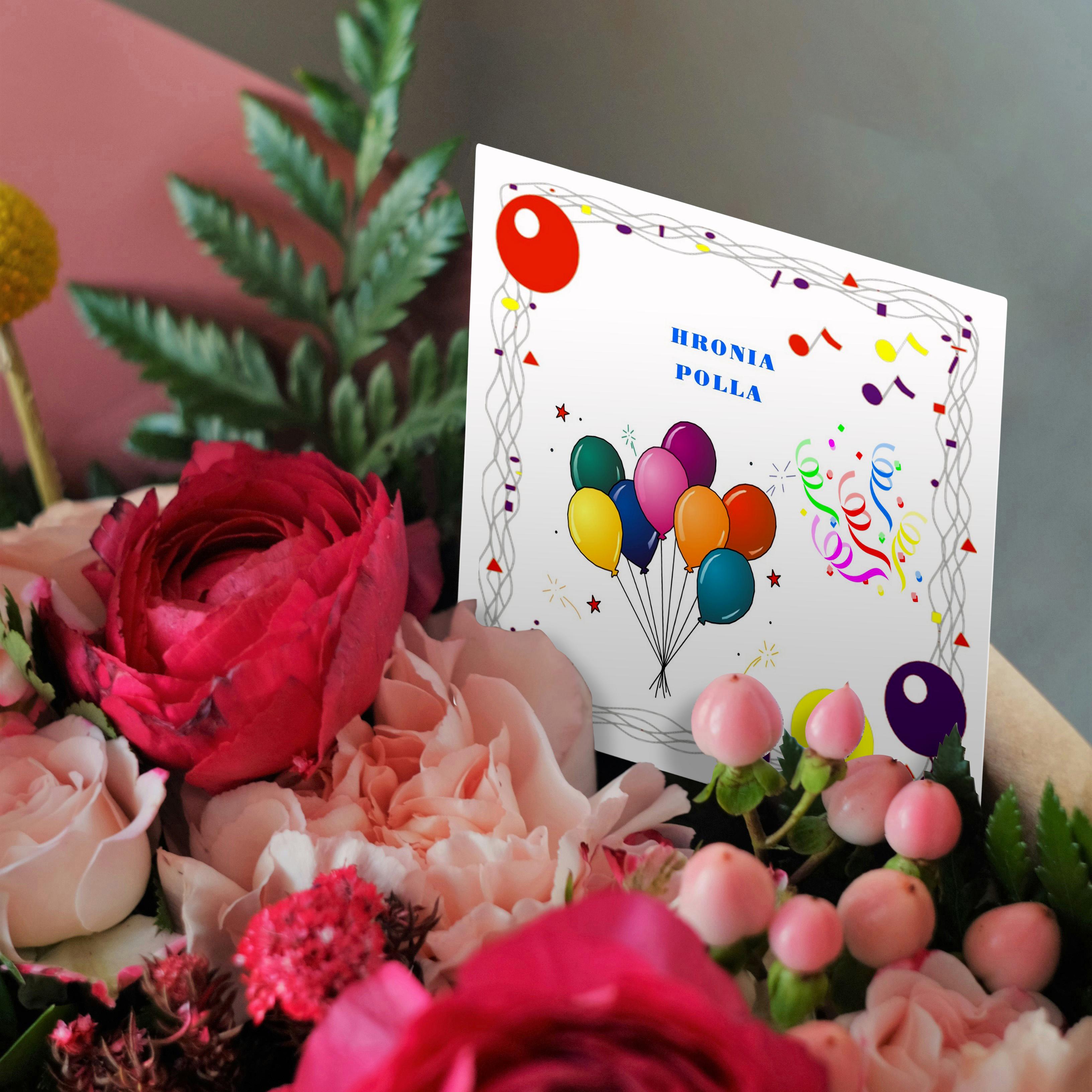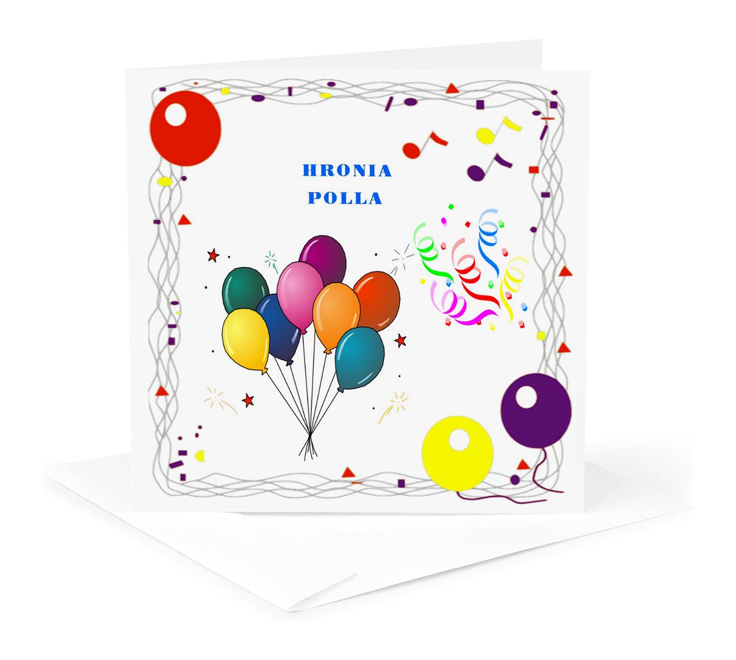 Florene - Special Events - Image of Happy Birthday In Greek With Balloons And Confetti - Greeting Cards